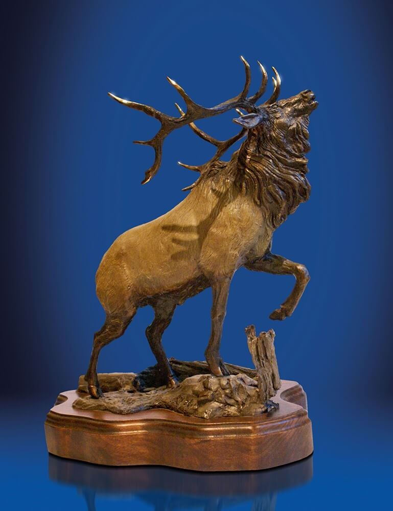 Master sculptor, Lorenzo Ghiglieri has captured the sight that many Elk hunters across North America have witnessed – a mature bull “Wapiti” displaying his dominance.
