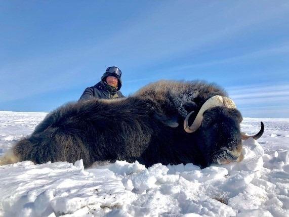 This Musk Ox hunt will be conducted on the main-land and two remote islands in the Northwest Territories. The hunt is 6-days with near 100% success on mature bulls. Inuit guides will take the successful high bidder by snowmobile and Qamutik sleds out on the land for an epic hunting experience! The camps are basic heated. Spike camps are insulated heated wall tents. The hunts are 1 on 1 with an Inuit guide and an assistant guide. The hunting will be done by traveling by snowmobile looking for small groups of Musk Ox. Once the herd is located, the final stalk is done on foot. This outfitter’s clients have taken several record-book bulls each year with both rifle and archery equipment. Spring and Fall hunts dates are available. If a Spring hunt is selected, it will be scheduled on available dates late March to the end of April 2024. If a fall hunt is selected by the hunter, the hunt will be schedule on available dates August/September 2024. (Fall hunt is ideal for the hunter who does not want the extreme cold weather. Travel on Fall hunts is by ATV and boats.). Wolf may be added to this hunt for ($2,000). On both Spring and Fall hunts a second Musk Ox can be harvested - tags must be arranged for prior to the hunt. Additional hunters are welcome ($11,500 each) as are non-hunters ($2,500 each.) The hunt arrival and departure point are Sachs Harbour, NWT. Hunter may choose rifle, bow or muzzleloader. Hunter is responsible for the coast of a license, tag, tips, NWT Government Trophy fee and 5.5% GST. Hotel accommodations maybe required both before and after the hunt (Inuvik Mackenzie Hotel – approximately $200 Canadian per night.) Canadian firearm permits are required and are available online.