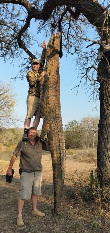 Restless Africa Safaris offers this special opportunity for two hunters to hunt Crocodile Northwest, South Africa! This safari opportunity is 7-day rifle hunt with each hunter hunting a crocodile up to 12 feet in length! Safari is to be scheduled on available dates in 2023 or 2024 (April-August). Hunter must or be at least eighteen years of age. Daily fees for each hunter (professional hunter, the use of a hunting vehicle, tracker, skinner) and Cities permits are included with this Safari. Accommodations during this safari will be a lodge facility. Safari may be upgraded to include additional hunters; non-hunters at daily rates; as well as additional species per the outfitters price list. The arrival and departure point for this hunt is O.R. Tambo International Airport in Johannesburg, South Africa. Transportation to and from the airport is included with this hunt. Hunter may choose to use his/her own firearm (South Africa permits required – outfitter will assist) or may rent a rifle from the outfitter at $180.00 per rifle per week. Ammunition for a rented rifle is available at $60.00 per box (20 rounds). A wounded but not recovered animal will be considered a killed animal and will be charged to the hunter’s account and not included in this safari package. A deposit of $1,000 per hunter is required to confirm dates. Deposit will be credited to the hunter’s account at the end of the safari. This safari is not to be booked back-to-back with another safari operator’s donated hunt.