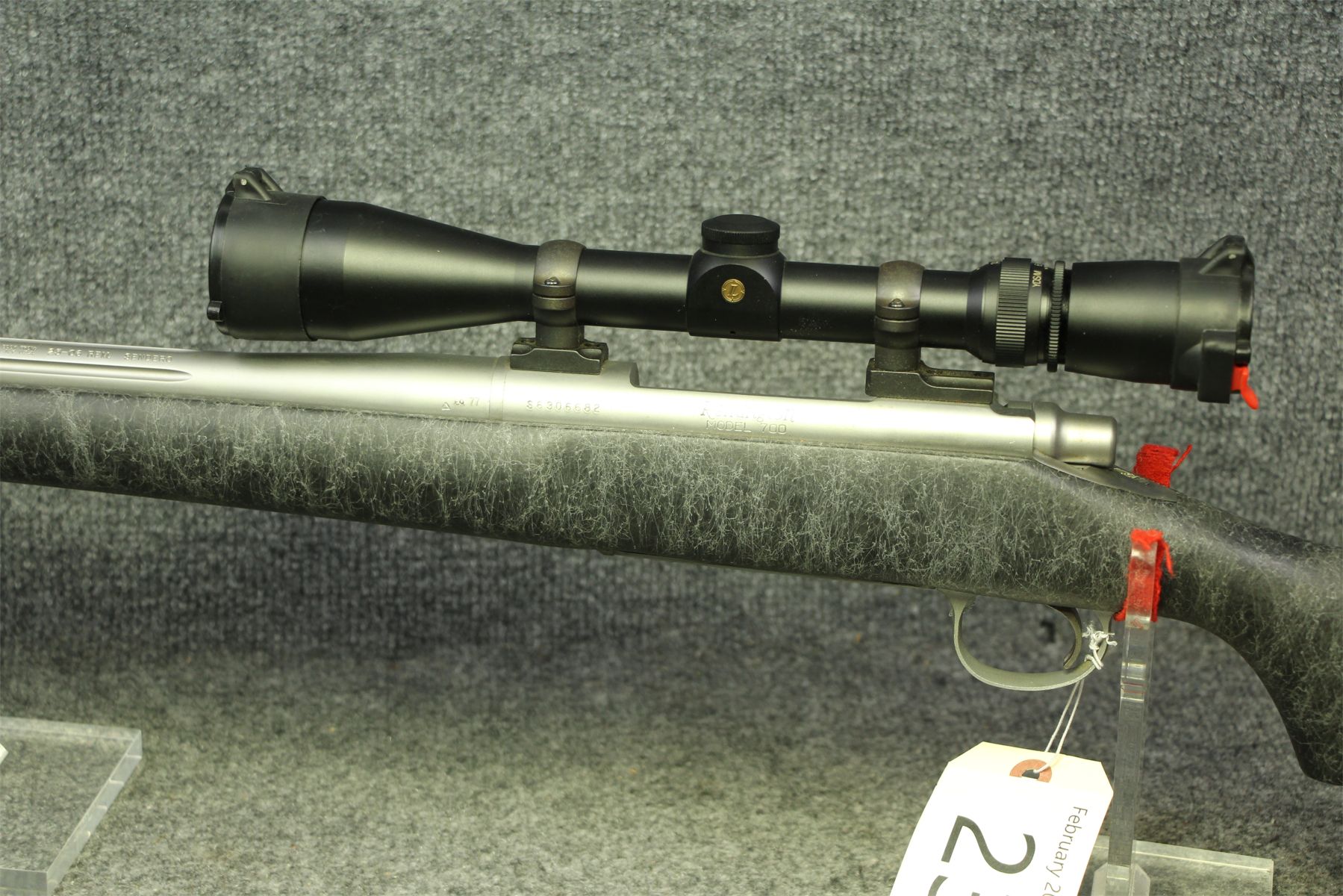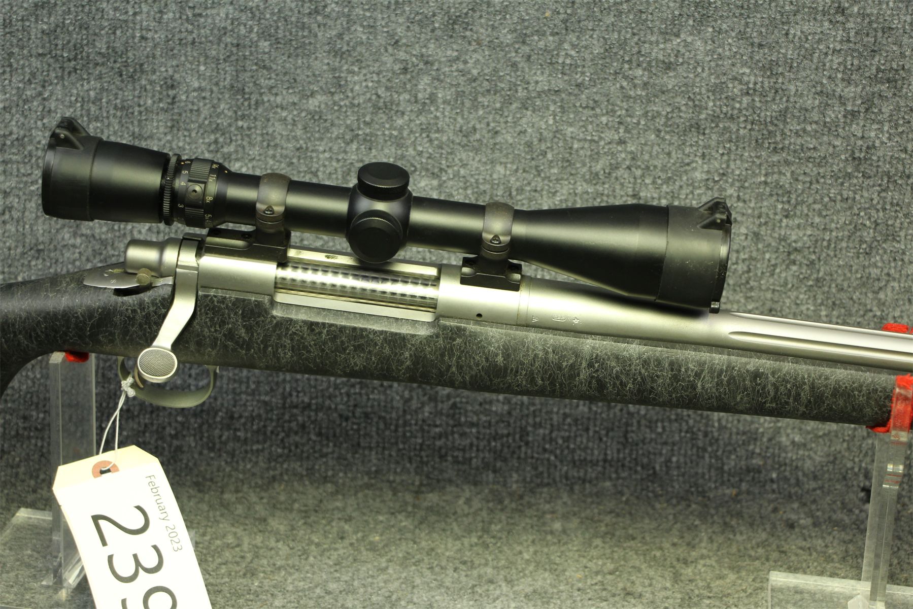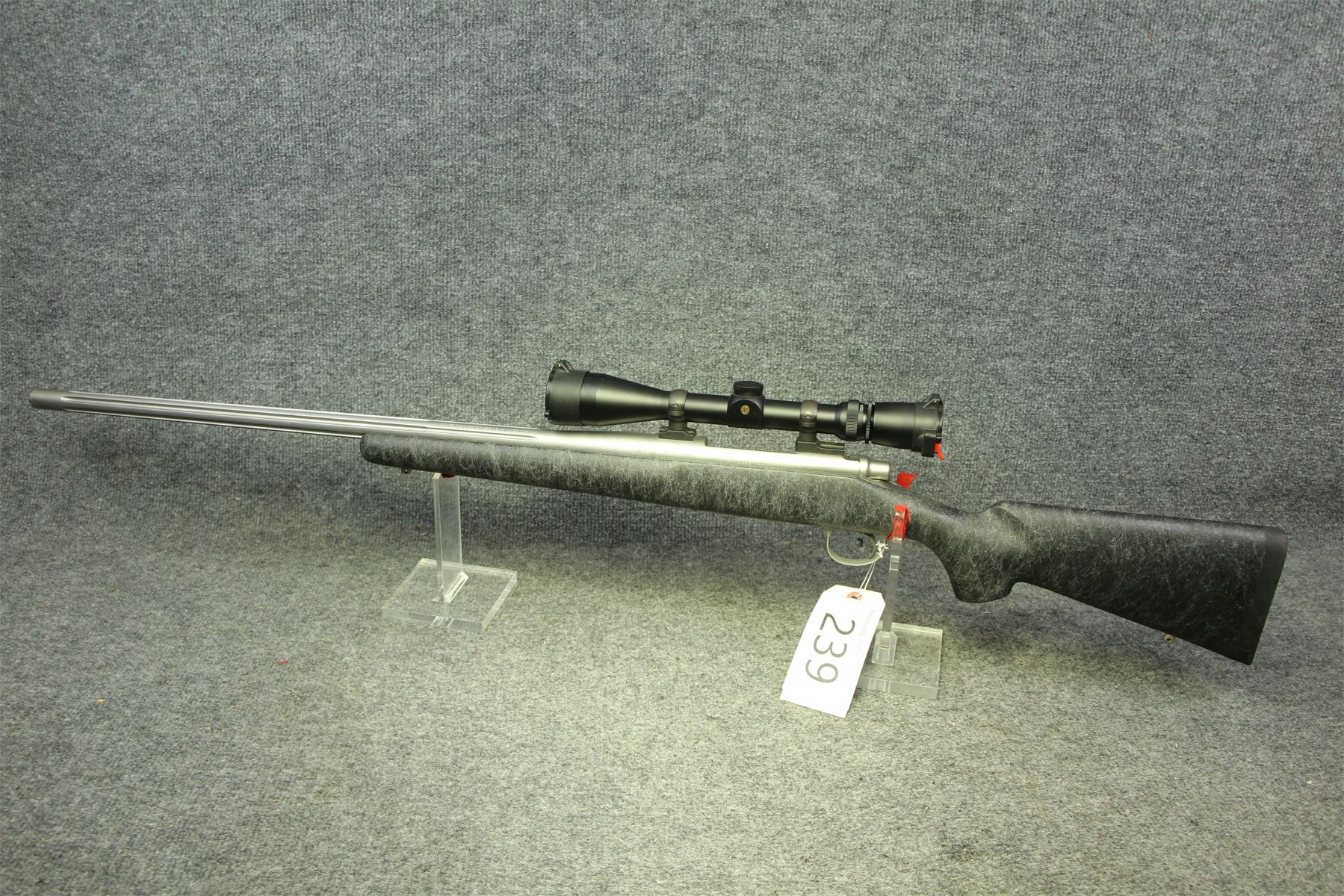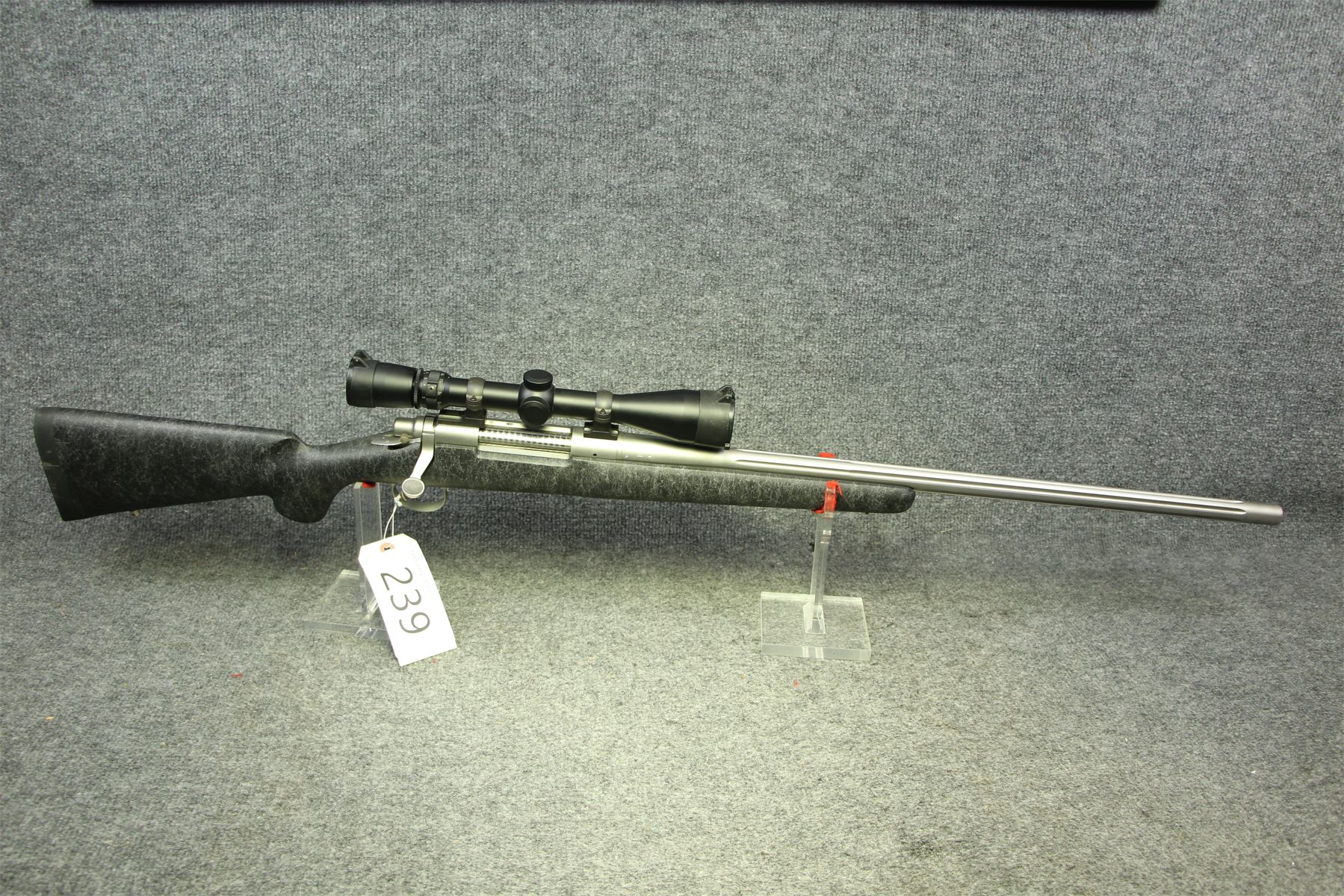 in out of the box condition. Very low round count. Stainless. Fluted, floating barrel. Composite stock. Leupold VX-III 4.5-14x scope with duplex cross-hairs and parallax adjustment.