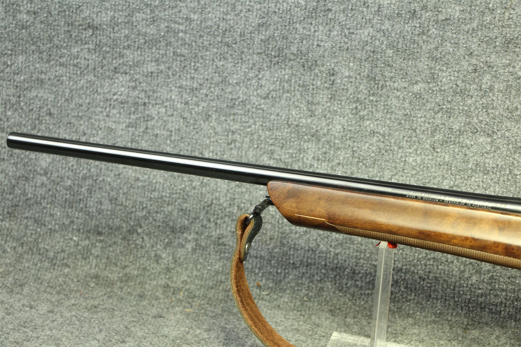 In nearly perfect condition. Some minor scrapes in the gorgeous American walnut stock. Metal has no marks at all. Floating barrel. Premium leather sling and a Bushnell 3200 Elite 3-9x scope with duplex crosshairs. Some minor scrapes on the scope.