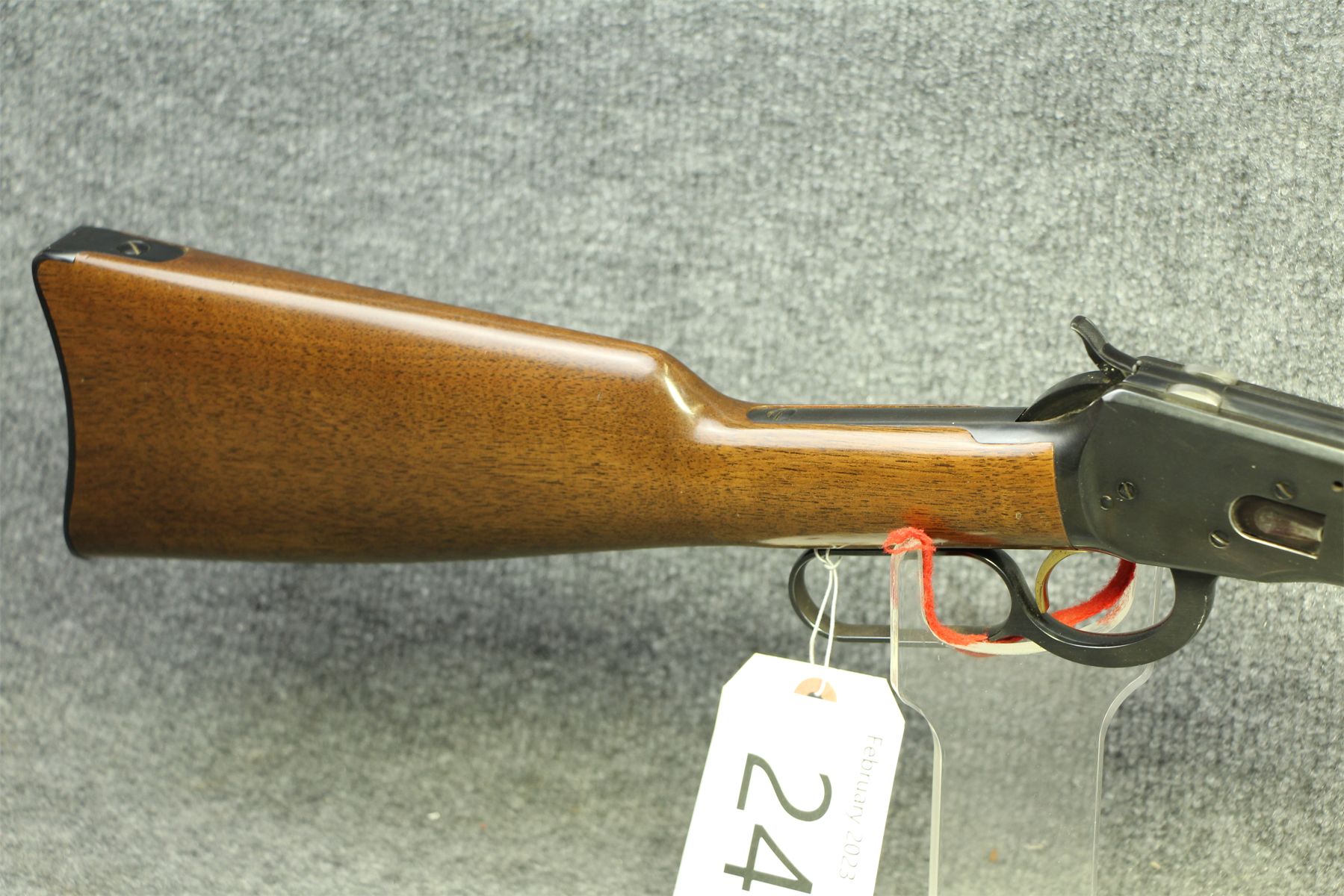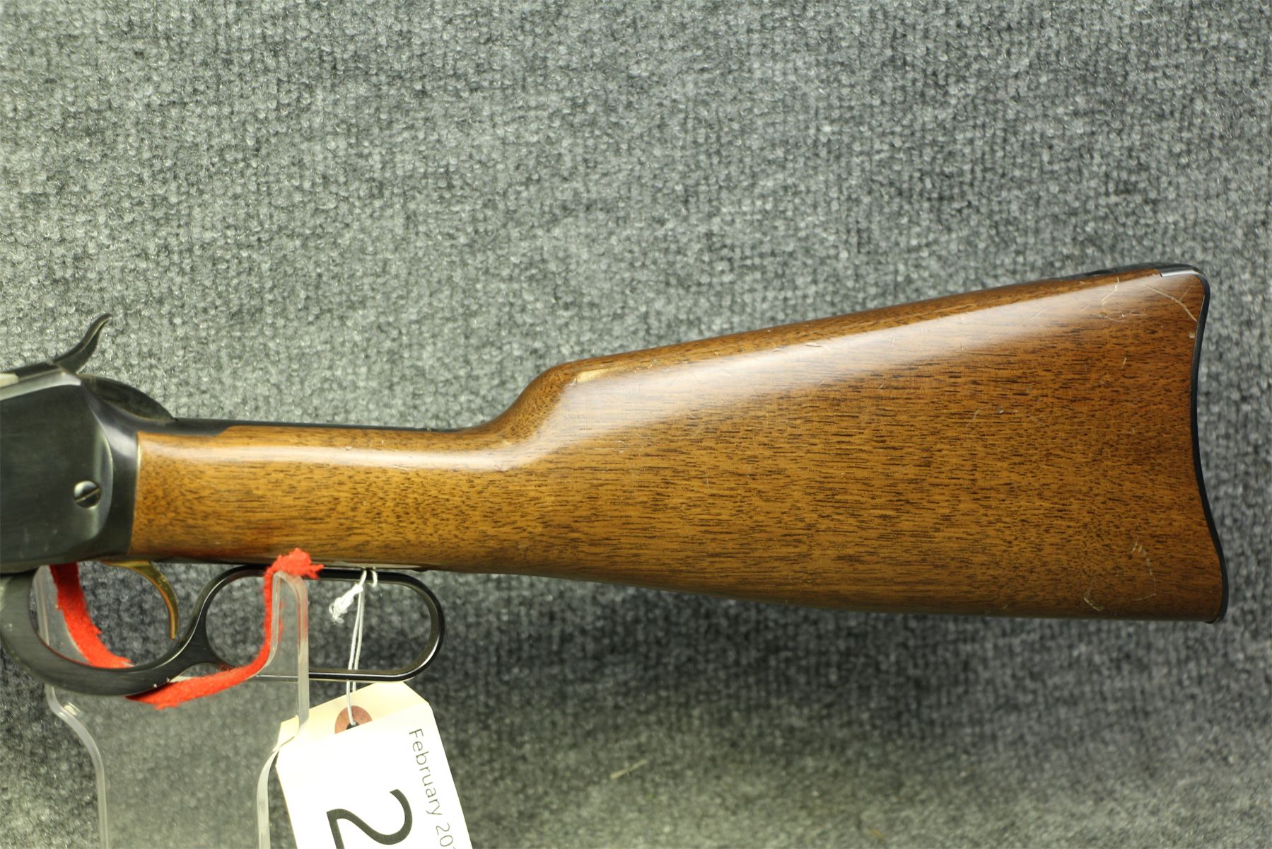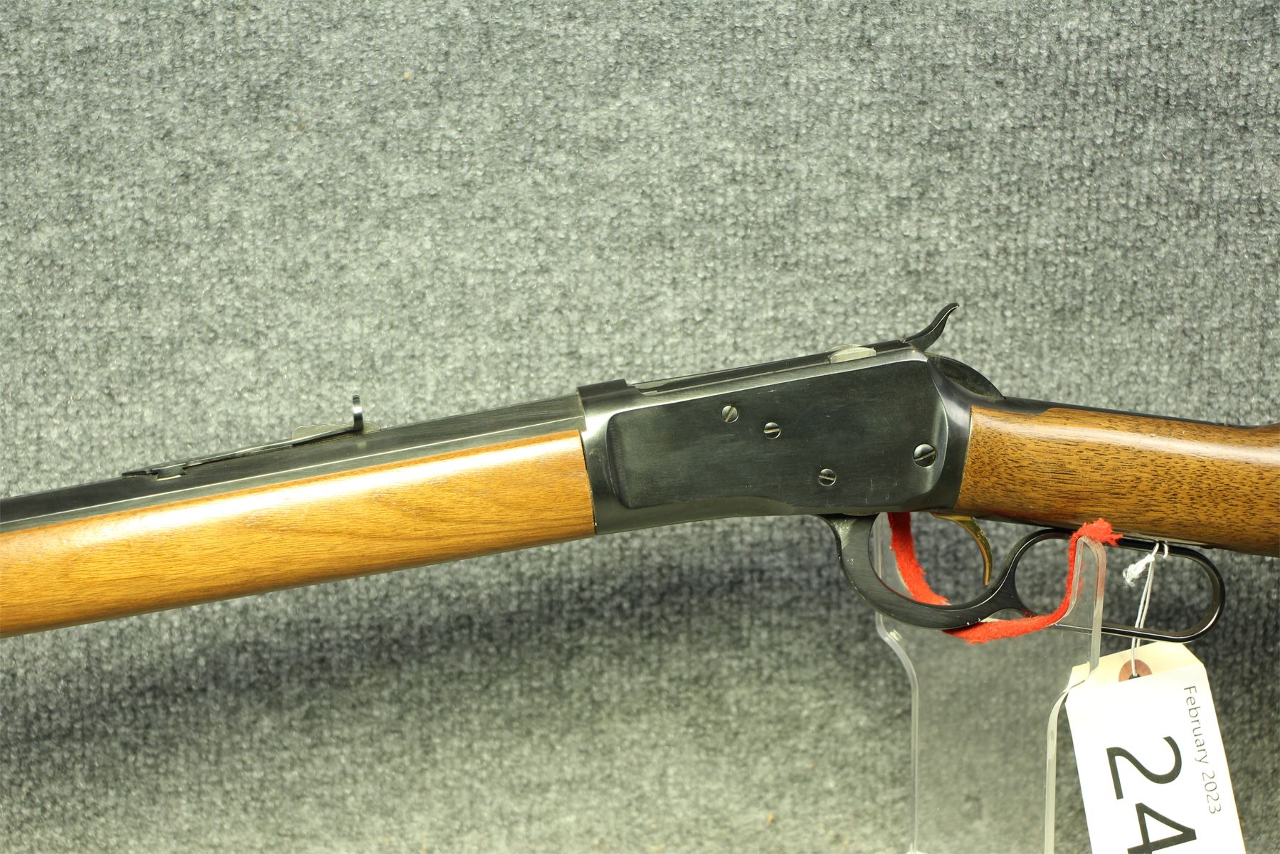 Again, no markings on the gun except for the serial number. Octagonal barrel. High gloss blueing and stock. Some minor handling marks on the metal and stock.