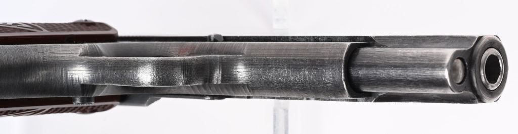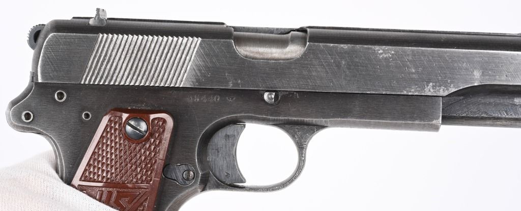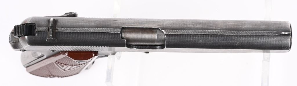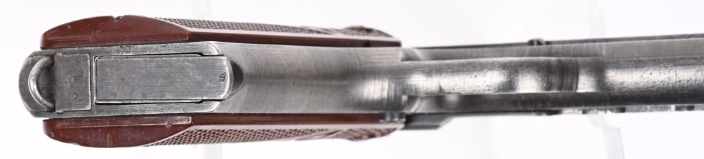 SERIAL NUMBER A5440 BARREL 4 5/8" CALIBER 9X19 PARA MANUFACTURED WW2. Produced in the second alphabet series with brown bakalite grips and blue finished steel. Inspected Eagle 77 externally and Eagle 623 internally on barrel. Produced with decocking lever and without takedown latch and is constructed with 3 frame rivets. Matching numbers on slide frame and barrel. CONDITION, Very good with pistol retaining over 90% blue finish. Grips are excellent and without cracks. Bore is good with slight frosting in grooves. Action operates properly. NOT IMPORT MARKED C&R