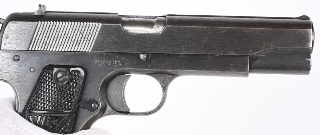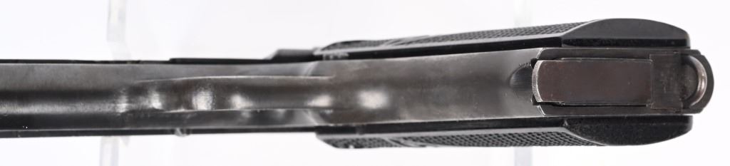 SERIAL NUMBER M3724 BARREL 4 5/8 CALIBER 9X19 PARA MANUFACTURED WW2.Produced in the 1st alphabet series with black bakalite grips with small retaining screws, and take down latch. All matching numbers including frame barrel and slide. Inspected Eagle 77 & Eagle 623 with German designation "P 35 (P)" slide marking. CONDITION, Very fine with over 95% blue finish remaining. Bore is very fine and action operates properly. Grips are very fine with no cracks. NOT IMPORT MARKED C&R.