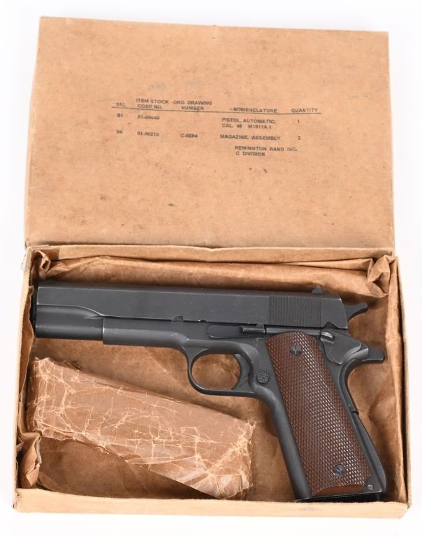 Lot 16 WW2 FACTORY BOXED REMINGTON RAND 1911-A1 45 PISTOL