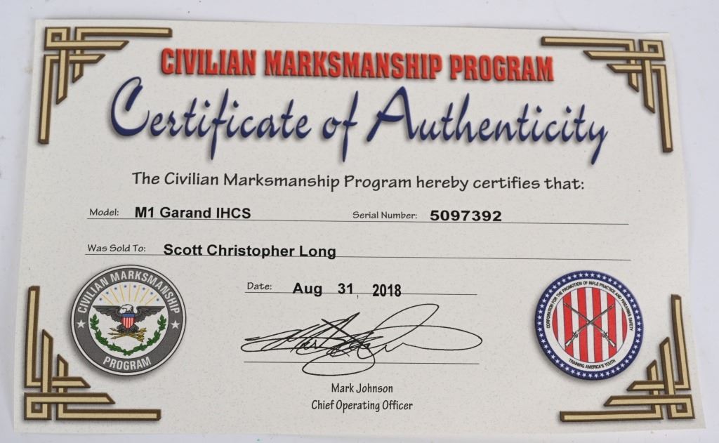 SERIAL NUMBER: 5097392. BARREL: 24". CALIBER: .30-06. MANUFACTURED: 1956. No import marks found. Barrel is "LMR" production and is dated "12-54". Bolt and operating rod are "IHC" marked. Trigger group is Springfield production, as are the sights, which are standard. Parkerized finish. Modern production "CMP" marked oiled finished wood stock. Includes CMP issued hard case and purchase certificate. CONDITION: Metal is very good overall, with general finish wear. Wood is excellent. Bore is clean overall, with crisp rifling. Mechanically fine. Case is excellent. C&R