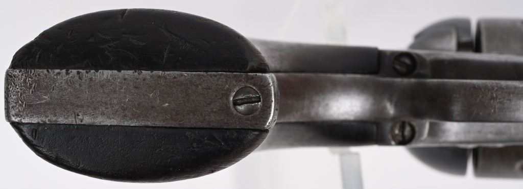 FRAME 140011 RAC (CARR ) , BARREL 5 1/2" #1684 JTC (CLEVELAND) CYLINDER #045 A (AINSWORTH), BACK STRAP #5712? HN (NETTLETON ) TRIGGER GUARD #71292-G. Typical 1890's factory re-build and refinish to the so called Artillery Model using a mix of good parts that were removed from other guns. The grips are one piece walnut slightly under size from refinish and no visible inspector stamps. Left side of frame has the two line address with U.S. stamp. Early screw in frame with bulls eye ejector head. Condition. All legends are sharp. Grips are very good. No original finish, just soft clean gray gun. Action functions properly. Bore is excellent. A nice honest example. ANTIQUE