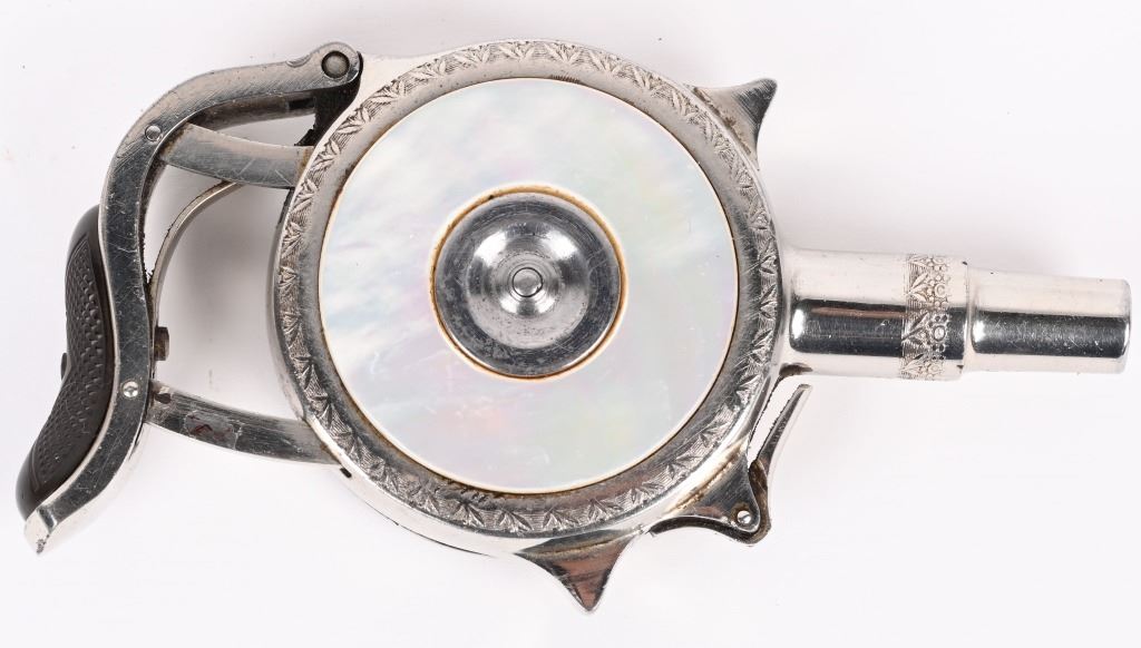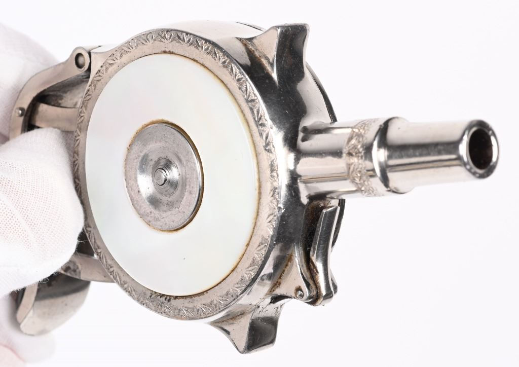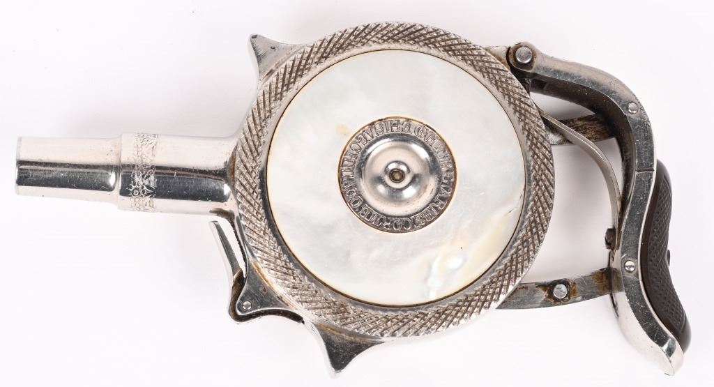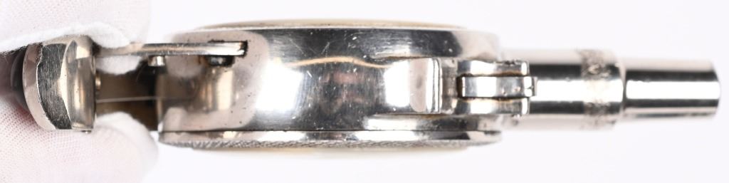 SERIAL 3268. BARREL 1 3/4". CALIBER 32 SHORT RF. MADE 1890'S. One of the most interesting gambler guns ever made. This example is nickel plated with Pearl scales, 7-shot repeater. Matching serial numbers. Condition. Has not seen any real use. Retains 98% nickel. Grips are lustrous and near mint. Fine working order. ANTIQUE