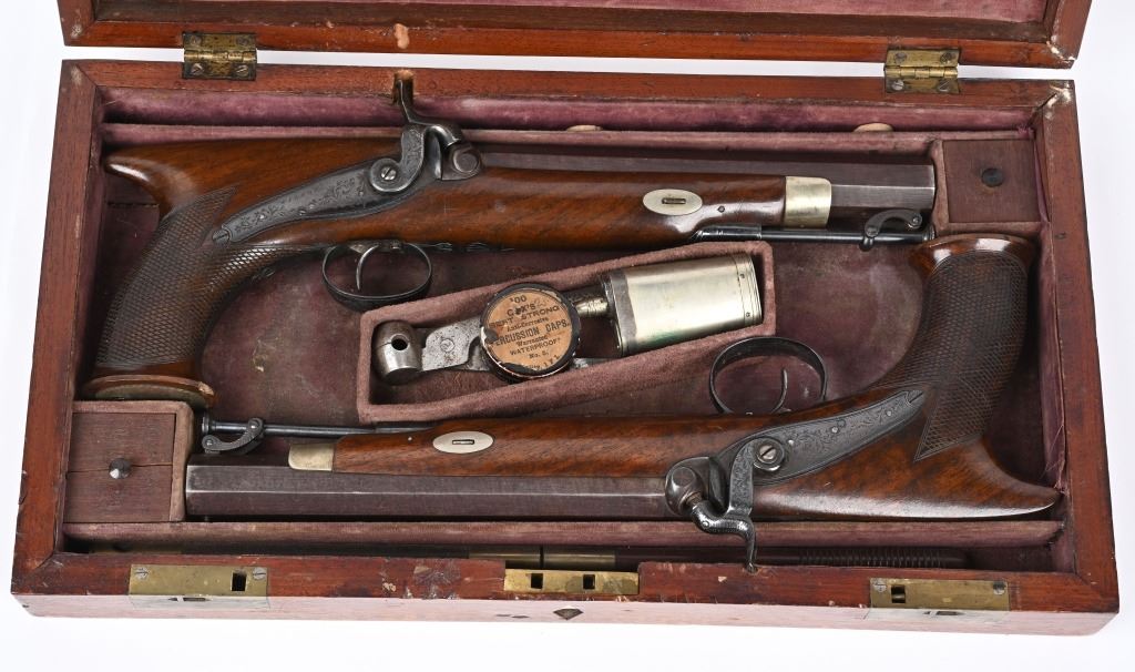 Lot 274 CASED PAIR OF A. WILSON LONDON SAW HANDLE PISTOLS