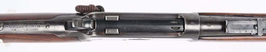 SERIAL NUMBER 948686 BARREL 20" CALIBER 32-20 WCF MANUFACTURED CIRCA 1921-28. Blue finished steel with oil finished straight grain American walnut stocks with carbine steel butt plate. Barrel mounted post & blade front sight with ladder adjustable rear carbine sight. Barrel marked with 2 line address on right side of chamber while left side has "MODEL 92 WINCHESTER 32 WCF" Winchester proofs on receiver bridge and top of chamber. CONDITION, Very good as refinished with 97% blue finish remaining, Brilliant bright bore. Action operates properly and locks solidly. Stocks are very good with a small repair at top left side of wrist and a filler were a butt swivel was removed. C&R
