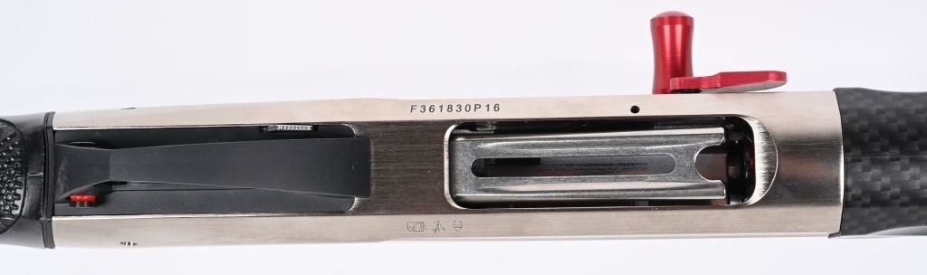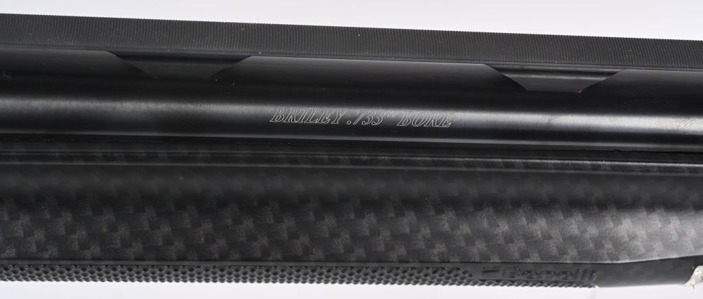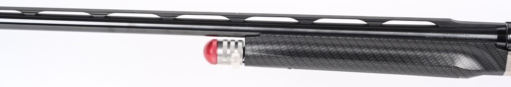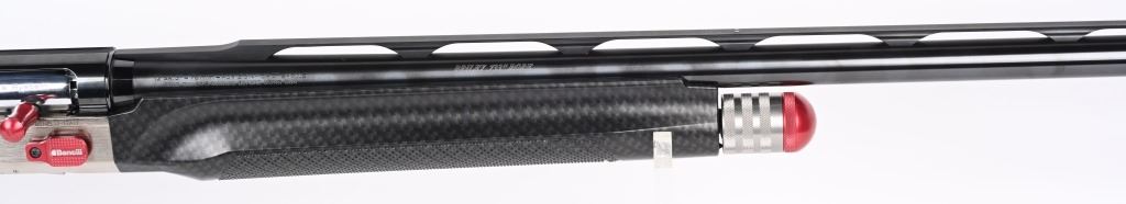 SERIAL NUMBER: F361830P16. BARREL: 30". CALIBER: 12 GAUGE. MANUFACTURED: 2016. Made in Italy. Performance shop model, with carbon fiber stock / forearm. Vent rib barrel with fiber optic front sight. Ported muzzle. Original blued finish and polished metal receiver. Includes full, modified, improved modified, improved cylinder and skeet chokes. Also includes a set of Briley choke tubes (full, skeet, cylinder, modified). 3" chamber. LOP is: 14-1/4". The factory hard case and original box is included. CONDITION: Excellent, as new in box. Bore is shiny and crisp. Looks to be fired very little from the factory. Case and choke tubes are excellent. MODERN