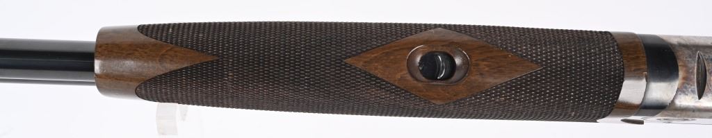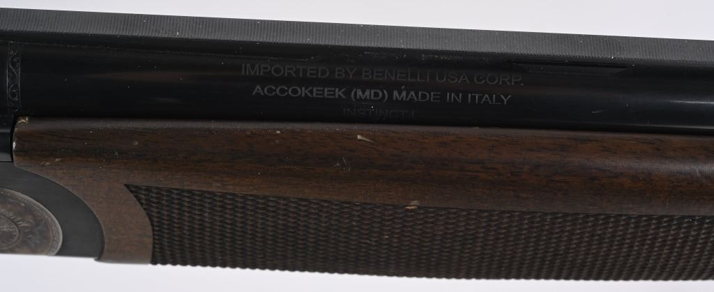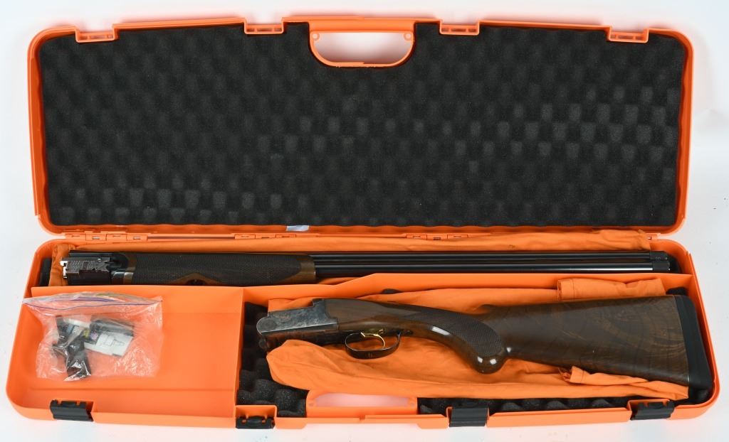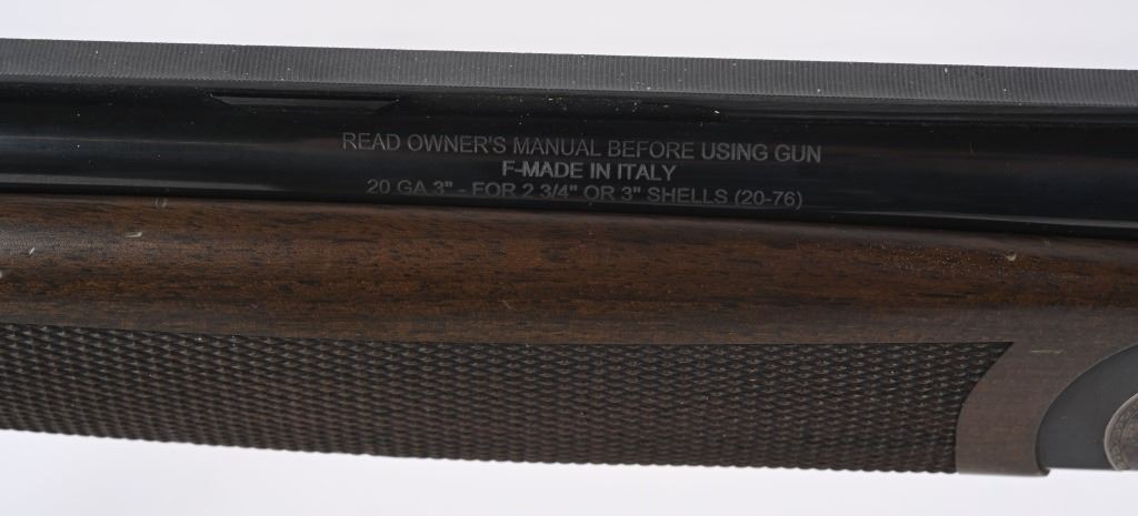 SERIAL NUMBER FF015793 BARREL 28" CALIBER / GAUGE 20 MANUFACTURED CIRCA 2000'S. Cased Italian Franchi Instinct "L" 20 Ga, over under shotgun with interchangeable chokes and chambered 2-3/4" & 3". Vent Rib barrels with ejectors. Single selective trigger with automatic safety. Satin finished checkered pistol grips walnut stock with pointer forearm and factory recoil pad. LOP, 14 1/2". Case color finished receiver with Gold accented trigger and blue finished vent rib barrels with fiber optic front sight. Comes in Franchi marked plastic travel case. CONDITION. Very good with brilliant bright bore. Receiver has some small areas of oxidation from field use at balance point and upper tang. Barrels retain most all of their factory finish with a few minor imperfections from use and assembly. Ejectors operate properly and action operates properly. Stocks are very good with a couple very minor impressions from use. MODERN