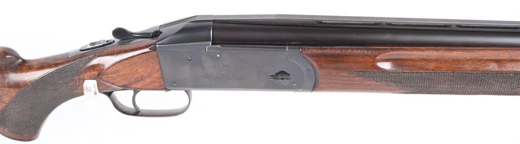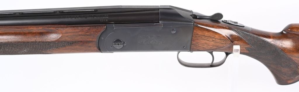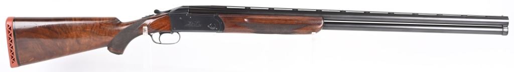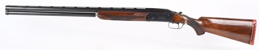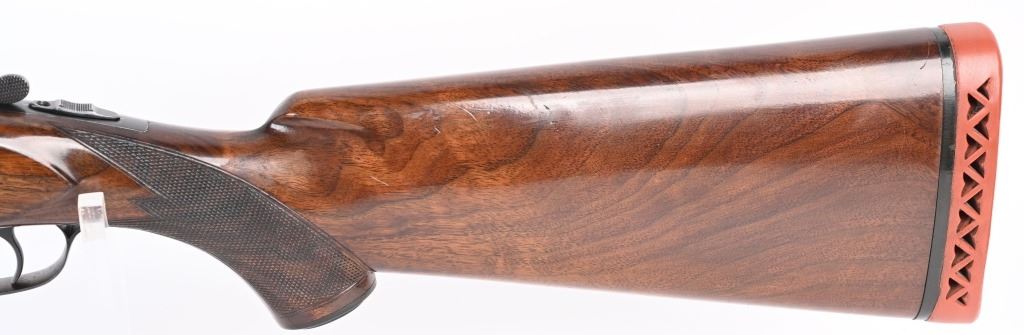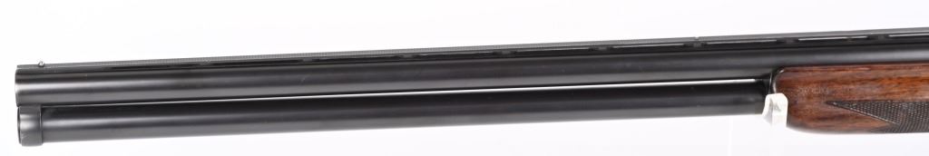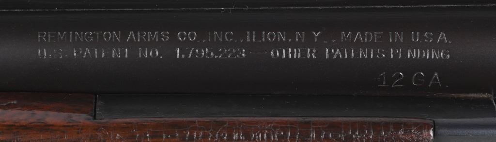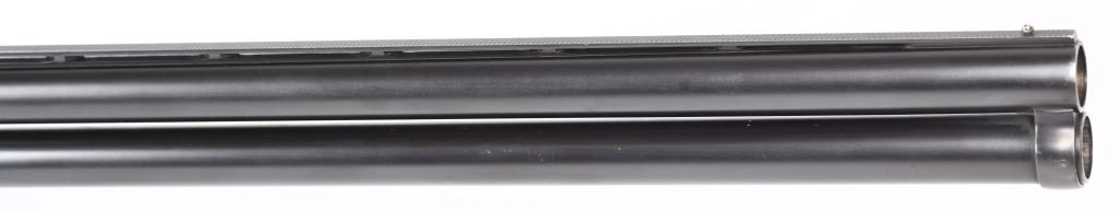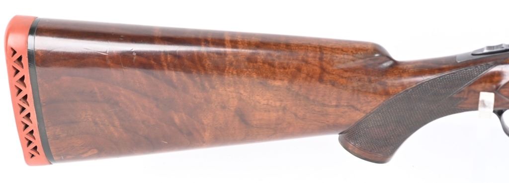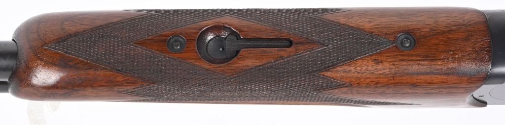 SERIAL NUMBER: 2023. BARREL: 30". CALIBER: 12 GAUGE. MANUFACTURED: 1934. Gun was made in 1934 and returned to the factory in 1948 for repair/refurbishment. Trap special gun with a single non release trigger, and the selector on the front of the trigger. Full vent rib with bead front sight. Factory re-applied blued finish. Oiled wood stock and forearm, with checkering on both. Added red rubber butt pad. 2-3/4" barrel. Full/modified choke bores. LOP Is: 15". CONDITION: Metal is very good overall, with mostly edge wear. Wood has minor wear and scratches. There is some cracking of the finish on the forearm. Bores are shiny. Sharp mechanics. Tight lockup. C&R