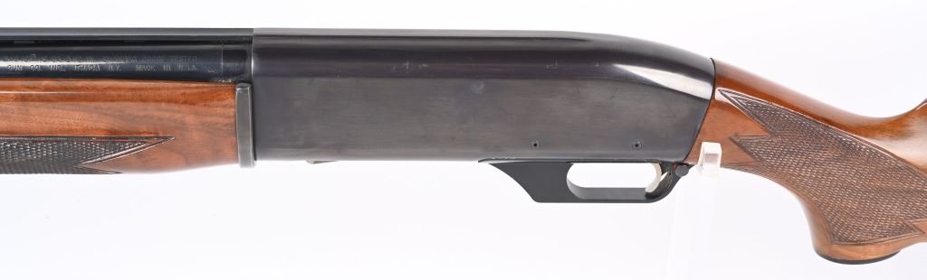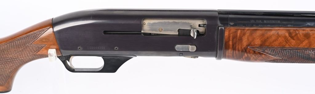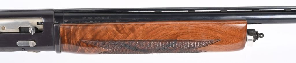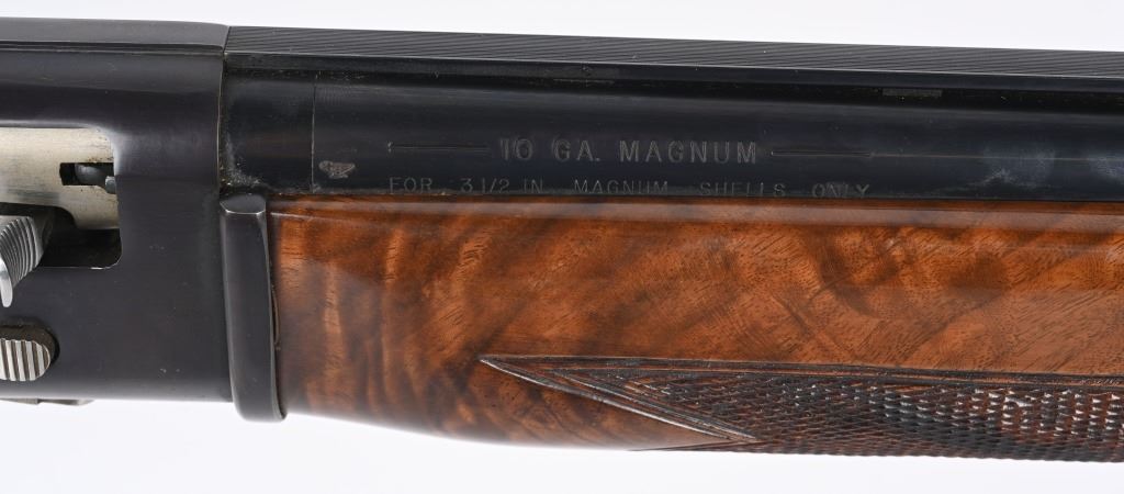 SERIAL NUMBER: 100008305. BARREL: 32". CALIBER: 10 GAUGE. MANUFACTURED: 1970'S. Full vent rib barrel with bead front sight. Factory blued finish. Oiled wood stock and forearm with fine checkering on the wrist and forearm. Solid red rubber butt pad. 3-1/2" chamber. Full choke bore. LOP is: 14-1/4". CONDITION: Metal is excellent overall, with a few light handling marks. Wood is excellent as well. Bore is shiny. Mechanically fine. MODERN