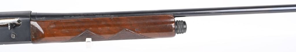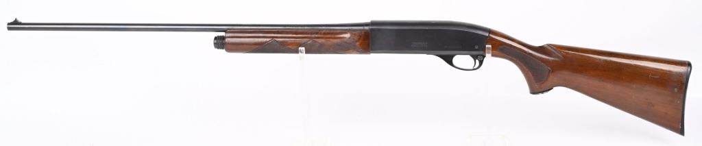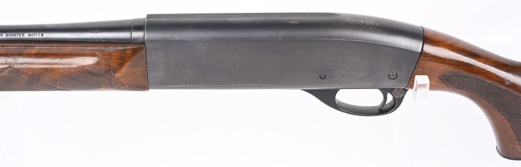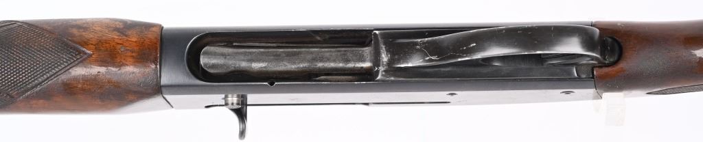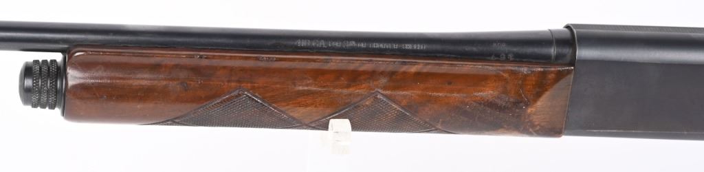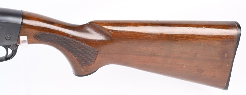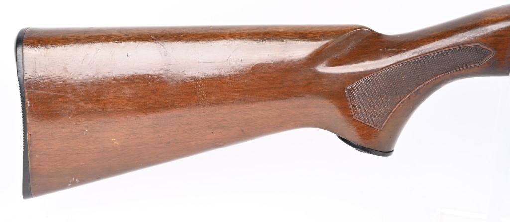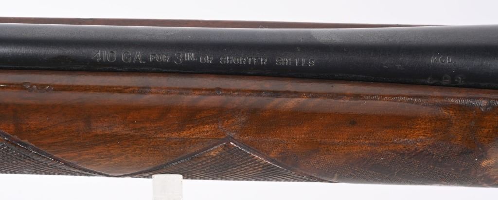 SERIAL NUMBER: 4119439. BARREL: 25". CALIBER: .410 GAUGE. MANUFACTURED: 1955. Plain barrel with with bead front sight. Factory blued finish. Oiled wood stock and forearm with checkering on the wrist and forearm. Black plastic capped pistol grip and butt plate. 3" chamber. Modified choke bore. LOP is: 14". CONDITION: Metal is very good overall, with general wear. Wood has a few dings, scratches and dents. Solid forearm with no visible cracks. Bore is shiny. Mechanically fine. C&R