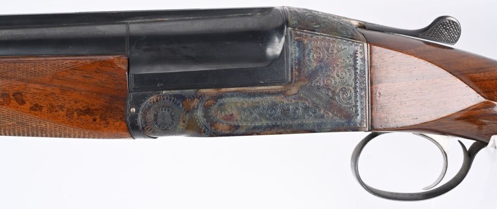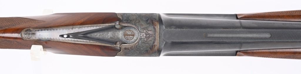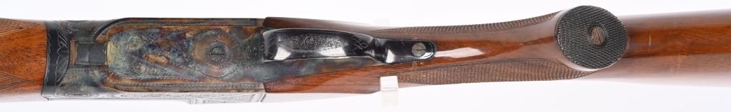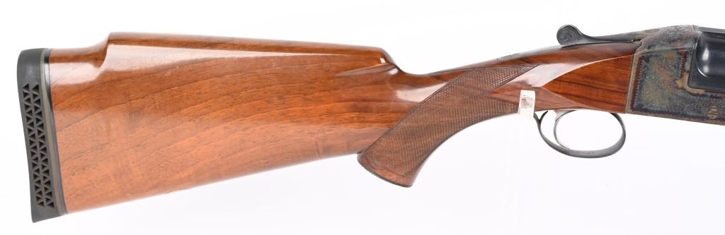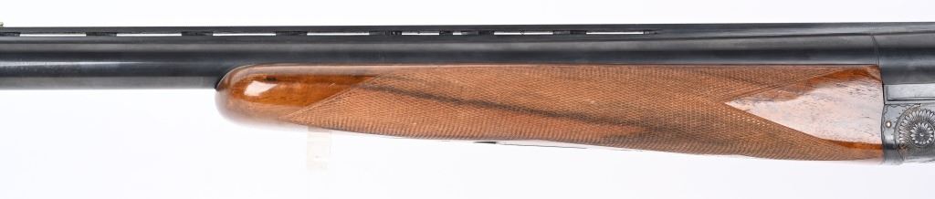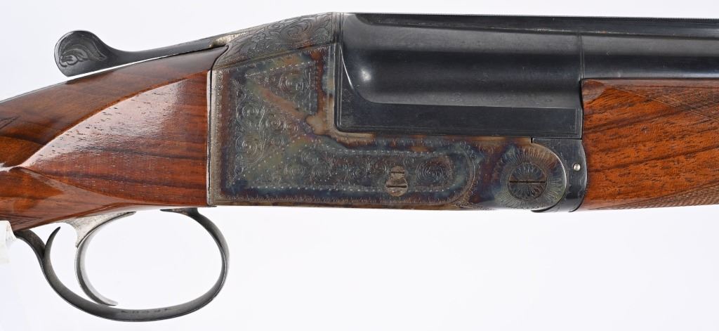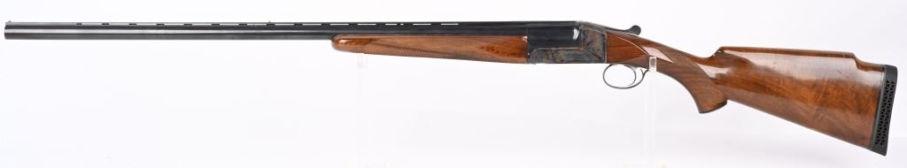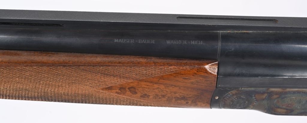 SERIAL NUMBER 48064 BARREL 32" CALIBER 12 GA, MANUFACTURED CIRCA 1970'S. Manufactured in Italy And marketed by Bauer Warren Michigan as "MAUSER". Checkered Monte-Carlo pistol grip stock with wide checkered trap fore arm. Double bite box lock action with case color finish and scroll & vine engraving. LOP14 1/2" over 7/8" Pachmayer recoil pad. Drop at heel 2 1/2" drop at comb 1 1/2" chamber 2 3/4" choked full. Single trigger with no safety. CONDITION, Very fine with 97% blue finish remaining. Brilliant bright bore and properly operating action. Stocks are very fine with some minor marks and impressions from use. MODERN