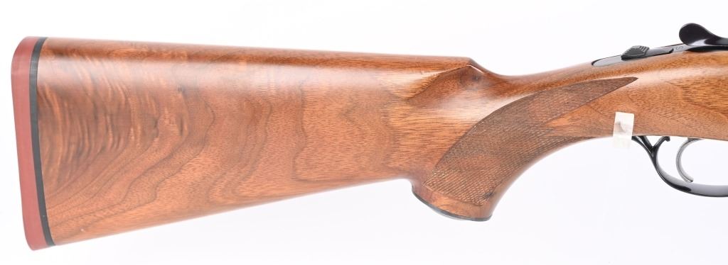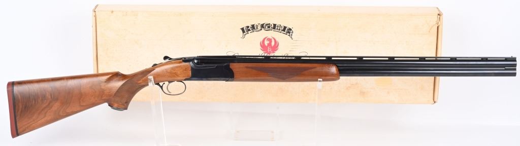 SERIAL NUMBER 400-57284 BARRELS 28" CALIBER / GAUGE 20 MANUFACTURED 1993. Blue finished barrels and receiver with vent rib with single bead sight. Checkered pistol grips walnut stock with matching fore arm. Single selective trigger with ejectors. Interchangeable choke tube system with 5 choke tubes and wrench. Shotgun is housed in original Ruger box with instruction manual and registration. CONDITION, Very fine with the metal retaining over 97% blue finish with brilliant bright bores and properly operating ejectors. The varnished walnut but stock is very fine with a few impressions from field use. The matching fore arm is good with a small group of nicks and dings at the tip and on dent on left side at rear. Box is shop worn, Spare choke tubes are very good. MODERN