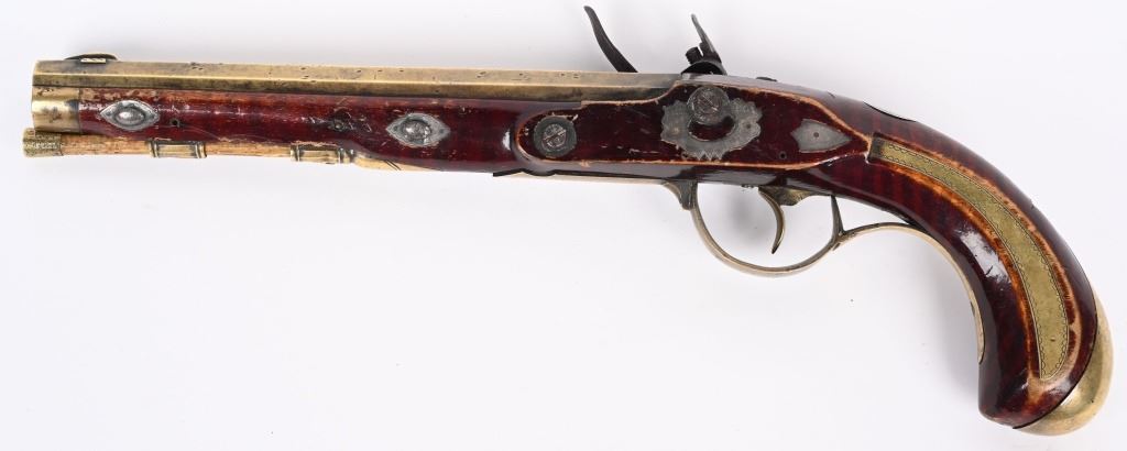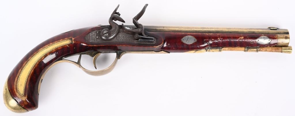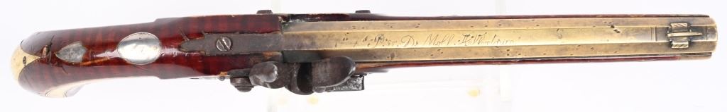 Lot 445 P&D MOLL ALLENTOWN BRASS BARRELED FLINT PISTOL