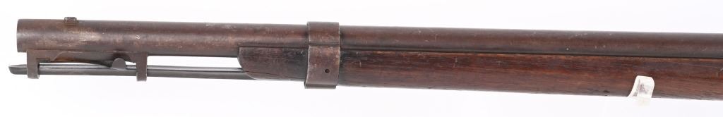 NSN. BARREL 23". CALIBER 64. MADE 1837-1840. About 2000 made. Block stamped J.H. HALL US 1839. Features sliding bayonet, two band, walnut stock, lanyard ring stud, CONDITION. Metal is deep dark patina. Legends are sharp. Stocks are very good with usual light abrasions and a couple of minor stress cracks. Missing rear barrel band but an unfinished replica is included. ANTIQUE