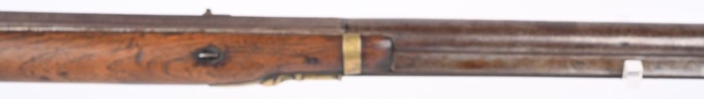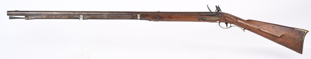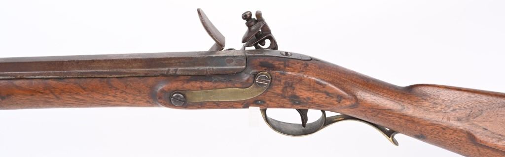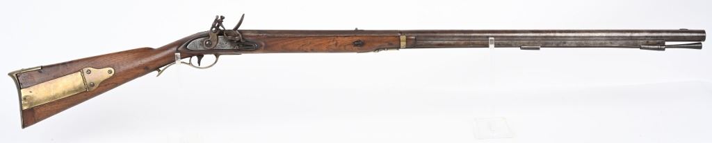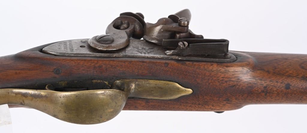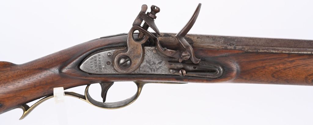 SERIAL NUMBER N/A BARREL 36" CALIBER 65 SMOOTHBORE MANUFACTURED 1818. The second series of the Harpers Ferry rifle with increased barrel length and stock dimensions. These were pushed into production due to the War of 1812. Originally 54 caliber flintlock but later bored smooth to musket use and converted to percussion. This example has been reconverted to flintlock and remains quite attractive. Lock is dated 1818 with the proper Harpers Ferry markings as well as the breech retains its original proofs and inspections. The stock is worn with period of use bruises and impression but is solid. An overall good example of the 1803 US Flintlock. ANTIQUE