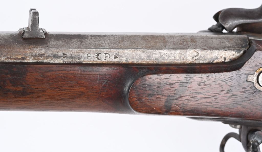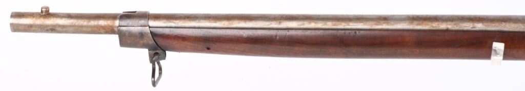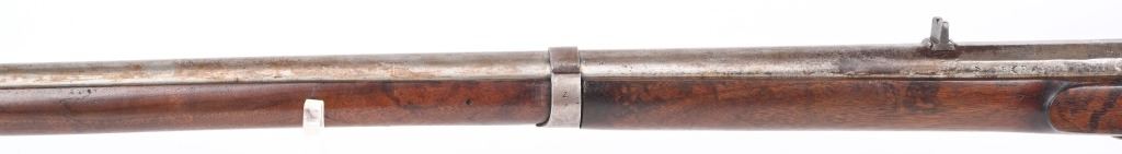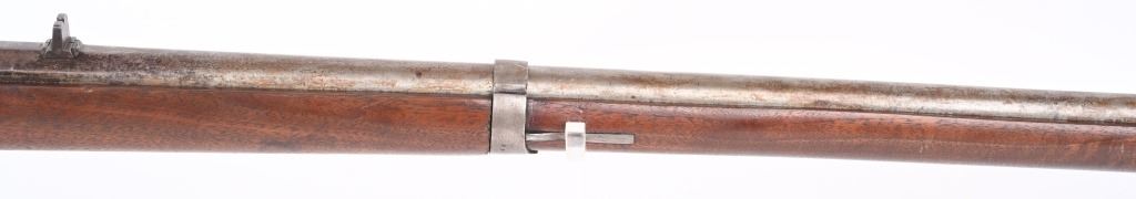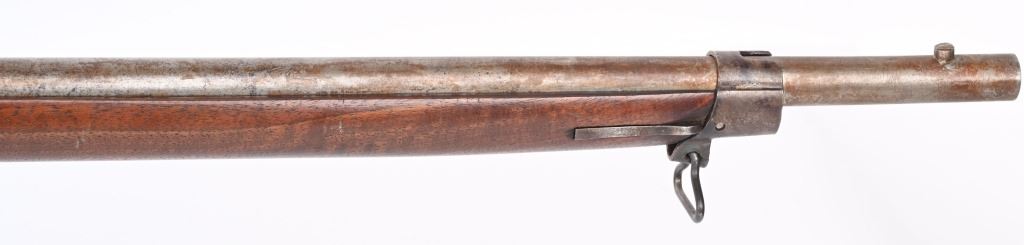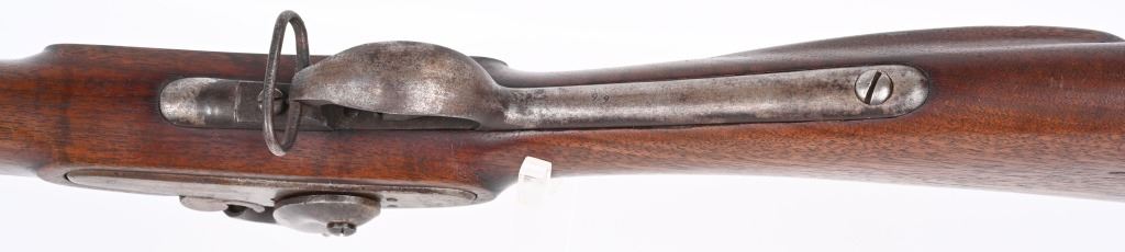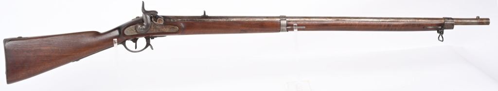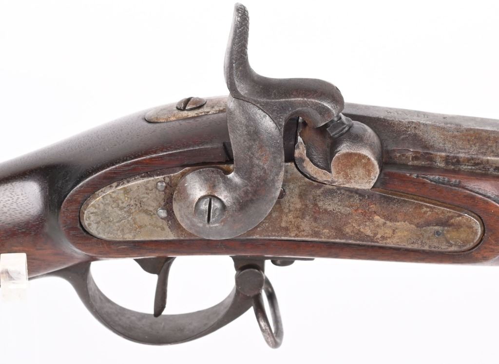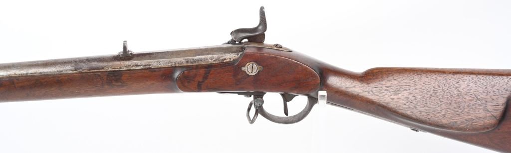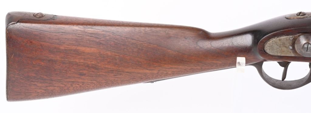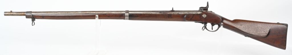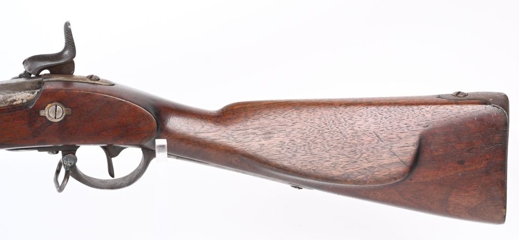 SERIAL NUMBER N/A BARREL 35" CALIBER .54 RIFLED MANUFACTURED CIRCA 1862. Full length oil finished walnut stock with cheek rest. Austrian pattern trigger guard and barrel bands. Lock is retained by single attaching screw with brass escutcheon. Rear sight is heavy fixed rear sight with traditional musket front sight. Walnut stock and lock mortise show no evidence of ever having a second lock attaching screw. Lock has been marked at a later date and probably for a museum or collection " AUSTRIAN RIFLE TYLER TEXAS" CONDITION, Breech is very crude with excellent bore and lock operates properly. Rifle has an even plum patina overall. Lock operates properly. ANTIQUE