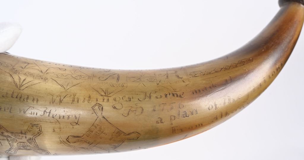 Lot 485 FANTASTIC NATHAN WHITING 1756 MAP POWDER HORN