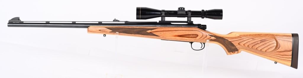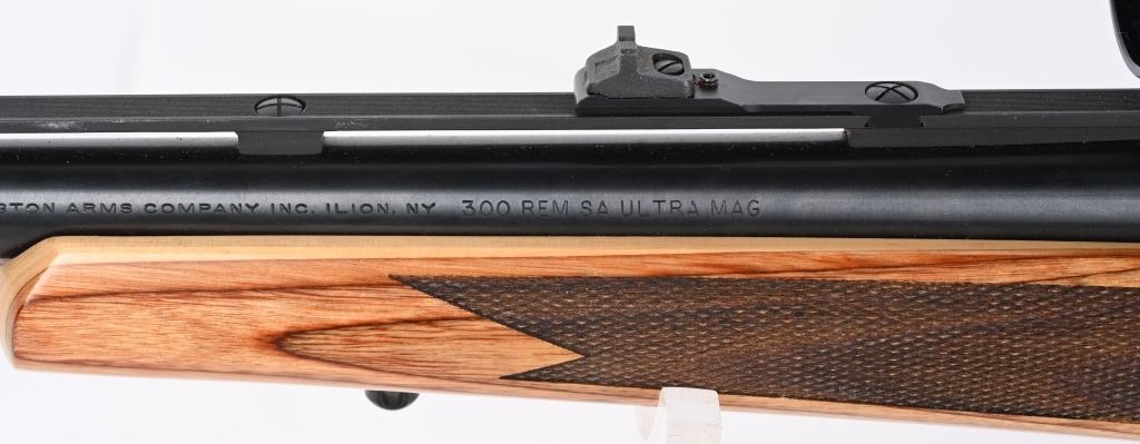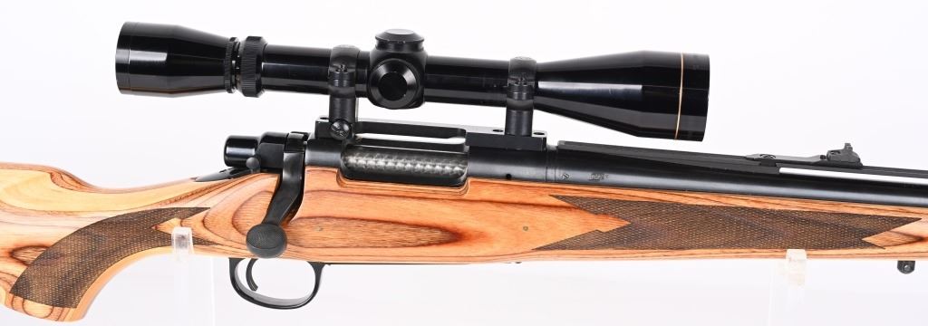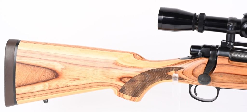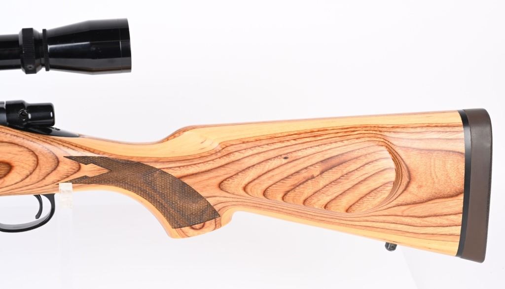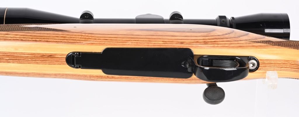 SERIAL NUMBER: 7792314. BARREL: 22". CALIBER: .300 REM SA ULTRA MAG. MANUFACTURED: 2003. Made and sold as the ultimate guide gun. Standard markings and features. Ribbed barrel with blade front sight and u-notch rear. Factory blued finish and laminate wood stock. Factory brown rubber butt pad. Includes attached Leupod 3-9 VARI-X II scope. LOP is: 13-3/4". CONDITION: Metal and wood are excewllent overall, both having a few light handling marks. Bore is shiny with crisp rifling. Fine mechanics. Scope has light exterior wear. Oprtic is clear. MODERN