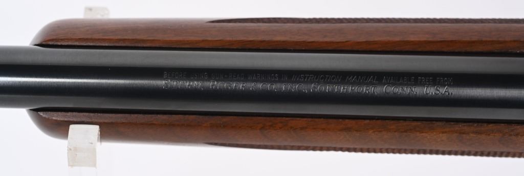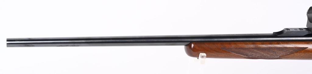 SERIAL NUMBER: 132-67598. BARREL: 26". CALIBER: 6MM REM. MANUFACTURED: 1985. Standard markings and features. Normal weight barrel, with factory scope mount and rings. Blued finish and oiled wood stock. Fine checkering on the wrist and forearm. Factory black rubber butt pad and sling studs. Metal capped pistol grip. CONDITION: Metal is excellent overall, retaining 90% or more of its original finish. Wood is excellent as well. Bore is clean overall, with strong rifling retained. Mechanically fine. Rear scope ring is missing three of its screws. MODERN