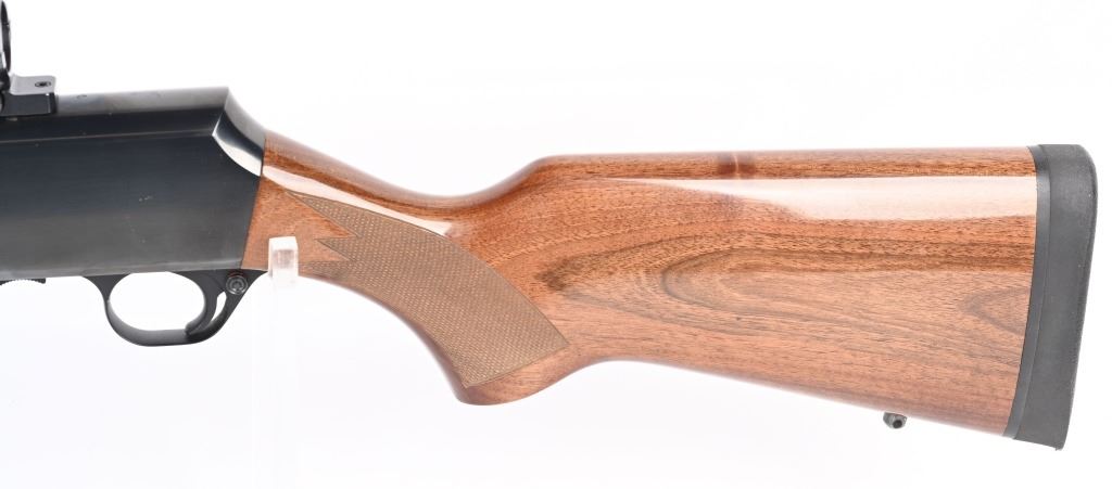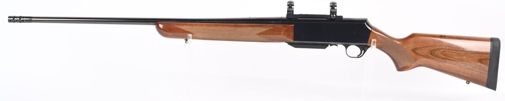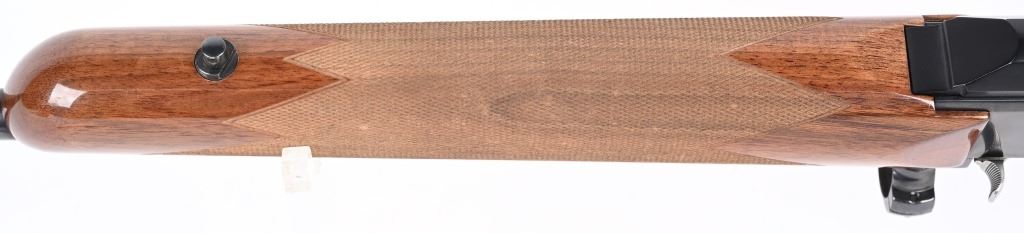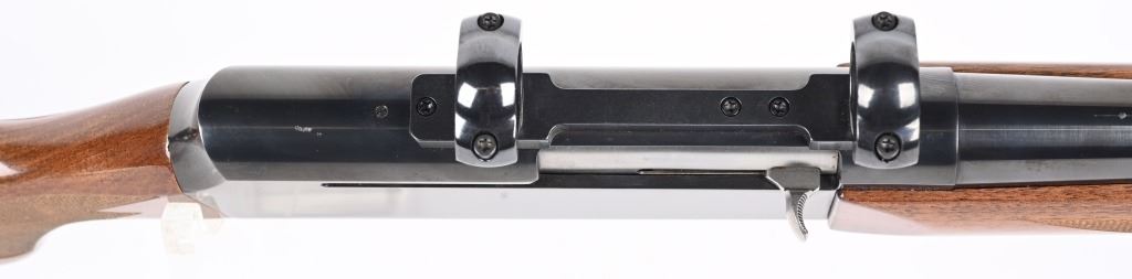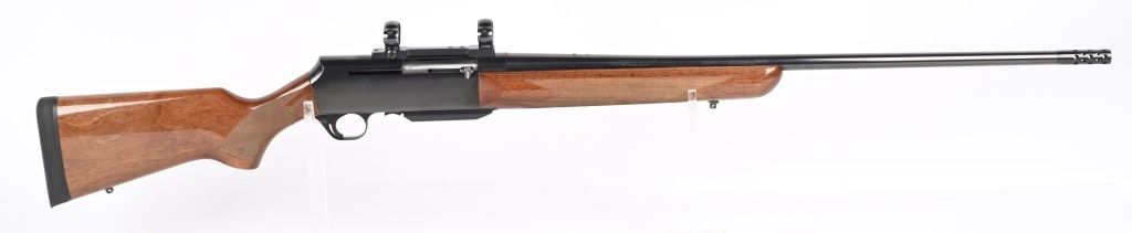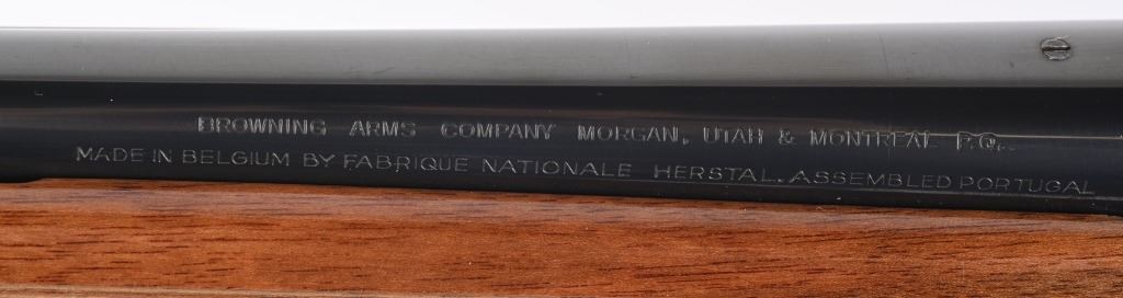 SERIAL NUMBER: 137PY07346. BARREL: 26-1/2". CALIBER: .300 WIN MAG. MANUFACTURED: 1982. Belgian made components, being made in Portugal. Belgian proofs. Threaded barrel with a ported muzzle device. No factory iron sights. Scope mount and rings on the receiver. Factory blued finish and gloss finished wood furniture. Fine checkering on the wrist and forearm. Factory black rubber butt pad. CONDITION: Metal and wood are excellent overall, both having a few handling marks. Bore is clean overall, with strong rifling. Mechanically fine. MODERN