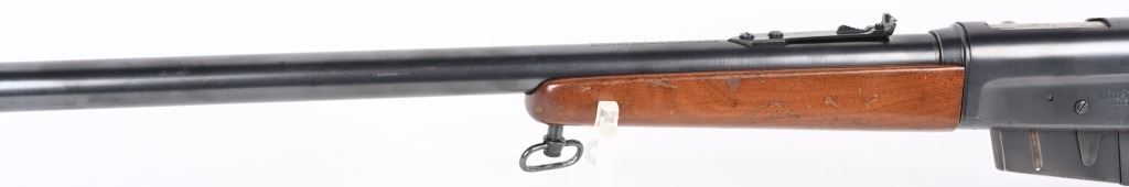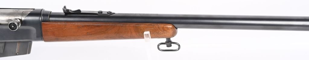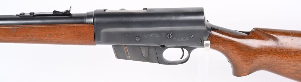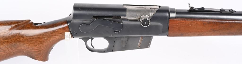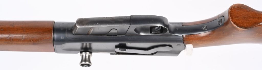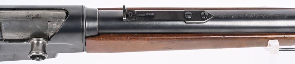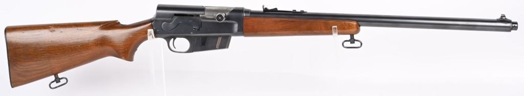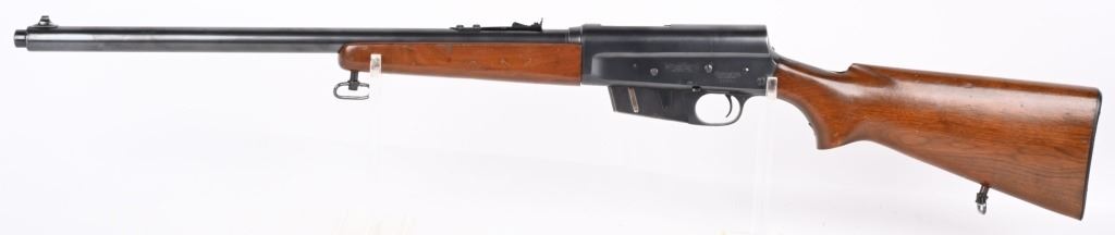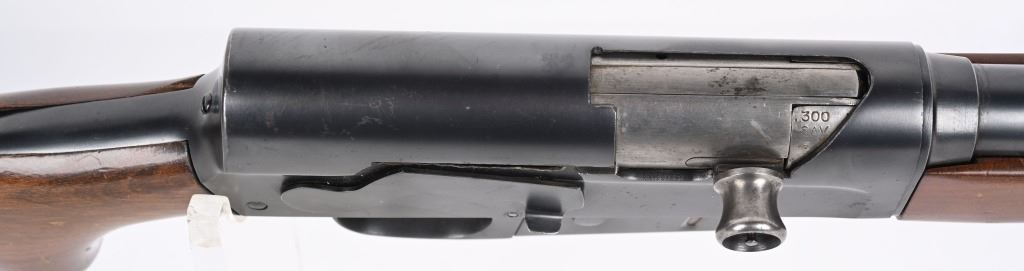 SERIAL 40552. BARREL 22". CALIBER 300 SAVAGE. MADE 1936-50. Called the WOODSMASTER. Semi auto , clip fed, blue finish, walnut stocks, Remington steel butt plate, correct sporting sights, sling swivels. Condition. 98% blue with just some light high edge wear. Stocks are excellent with few dings and small chip left wrist at frame. Mirror bore. C&R