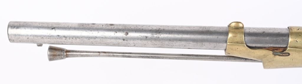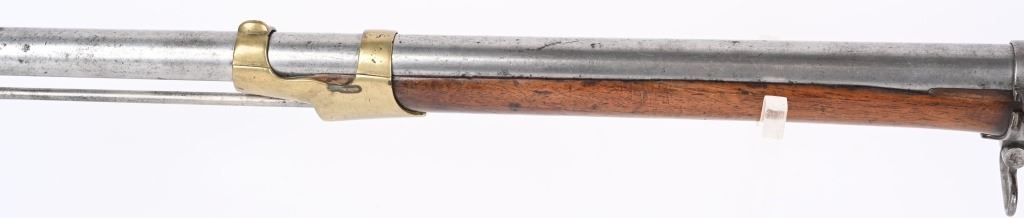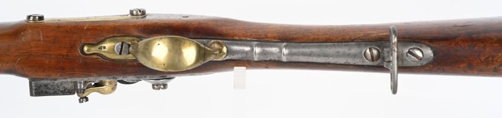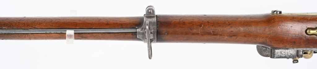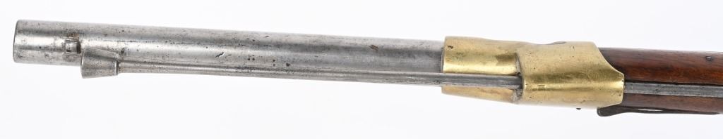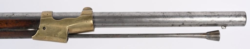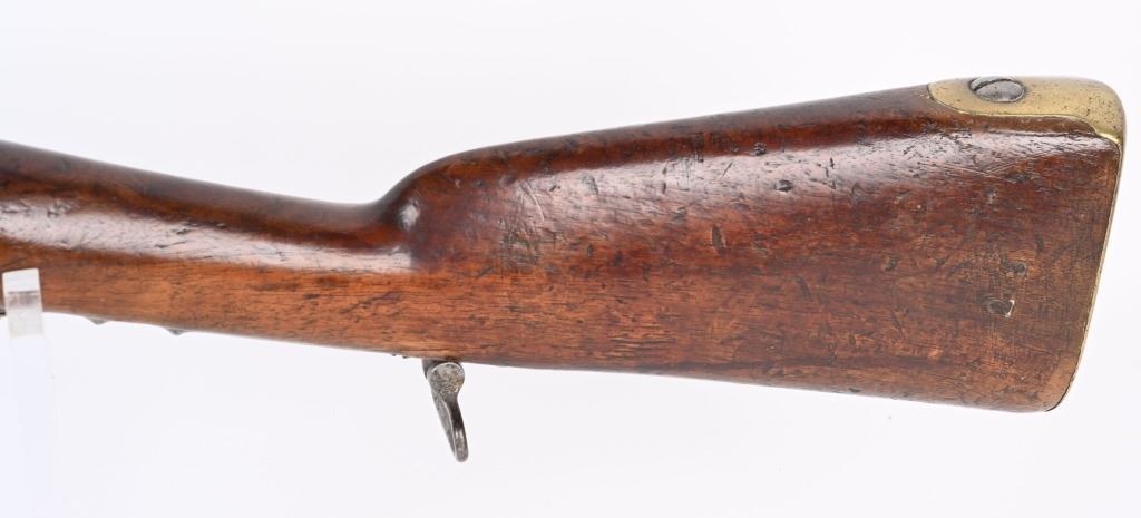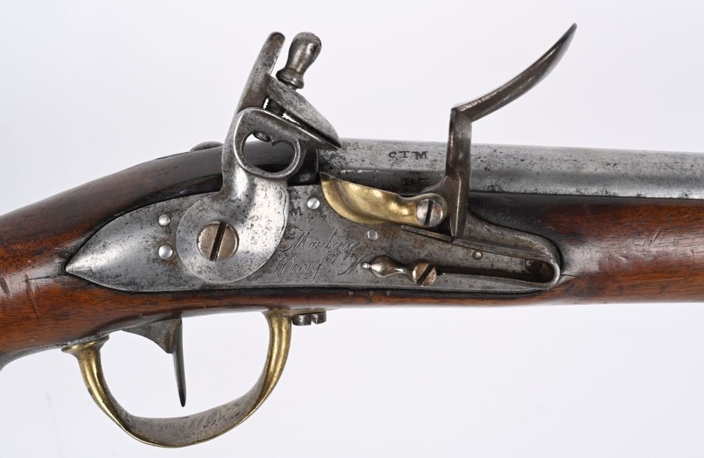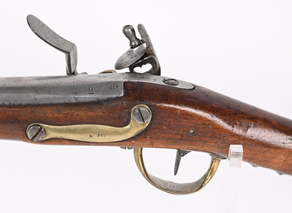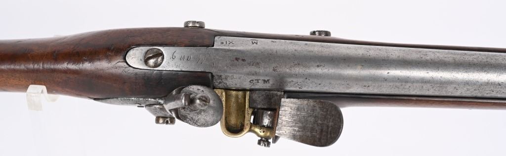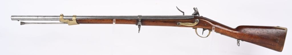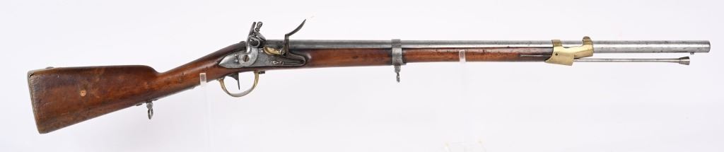 SERIAL NUMBER 30" CALIBER 69 SMOOTH BORE BLACK POWDER MANUFACTURED CIRCA LATE 1700-1810. One piece walnut stock with brass forend band , iron mid-band , brass trigger guard attached to iron trigger band. Brass butt plate. Flint lock marked "MAUBEUGE MANUF N." in script. Breech marked with inspections "STM " and tang marked with "M an g" CONDITION, Very fine with metal remaining bright. Bore is dark but remains good. Lock operates properly. Stock is full sized and remains solid with period of use bruises. ANTIQUE