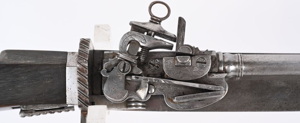Lot 546 IMPRESSIVE GERMAN HUNTING SWORD / FLINTLOCK