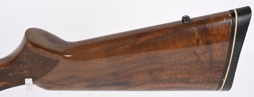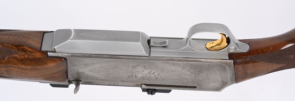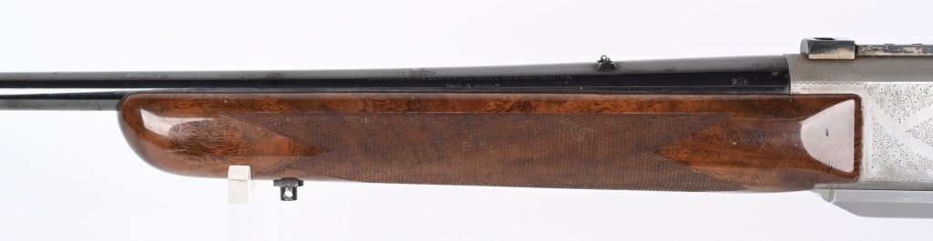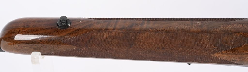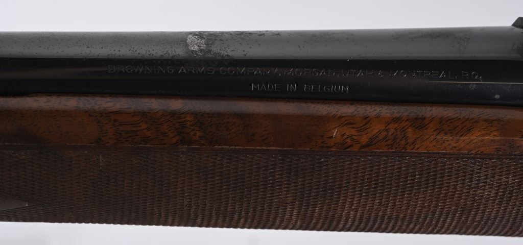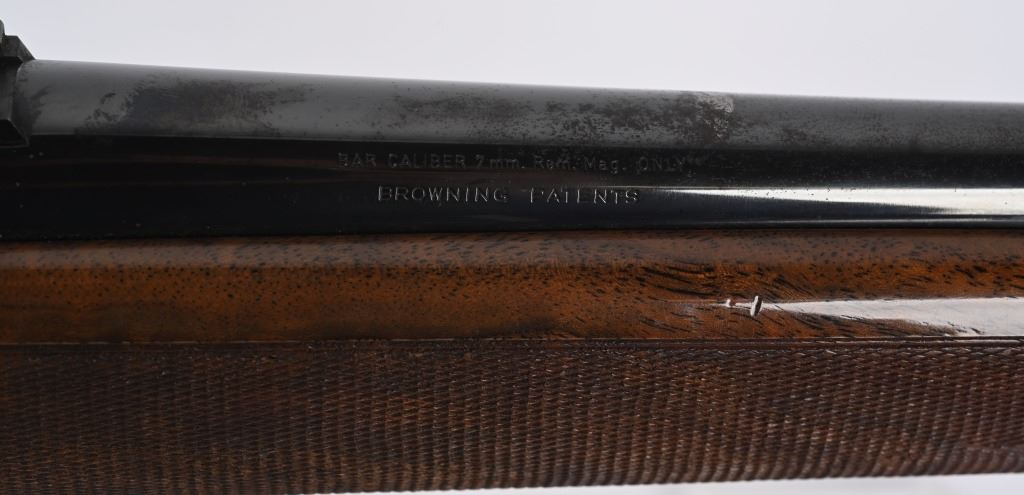 SERIAL NUMBER: 70531M70. BARREL: 25". CALIBER: 7MM REM MAG. MANUFACTURED: 1970. Made in Belgium, with standard markings on the barrel. Factory hooded blade front sight. Rear sight base is present, but the actual sight is absent. Redfield scope base is present. Blued barrel with French Gray reciever, with fine Grade 3 game scene engraving. Laqured wood butt stock and forearm, with fine checkering on the wrist and forearm. CONDITION: Metal is very good overall, with general wear and handling marks. Frame has some tarnish. Barrel has light wear and a few freckles of surface rust. Wood has minor impressions, scrapes and scratches. Bore is shiny with crisp rifling. C&R eligible.