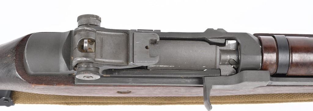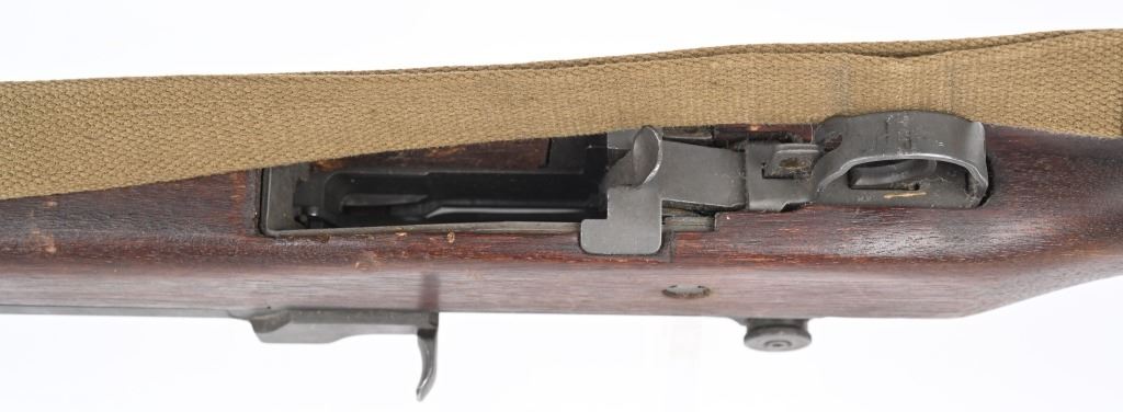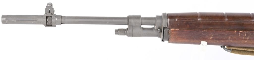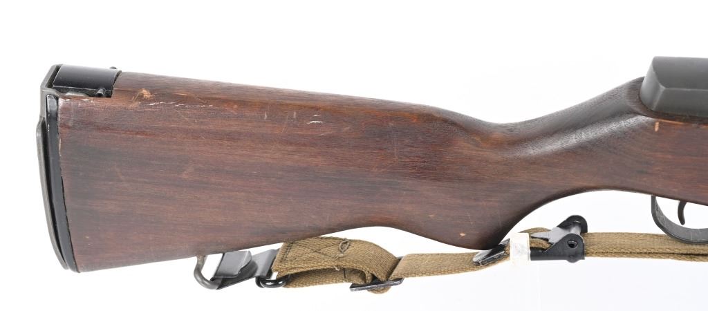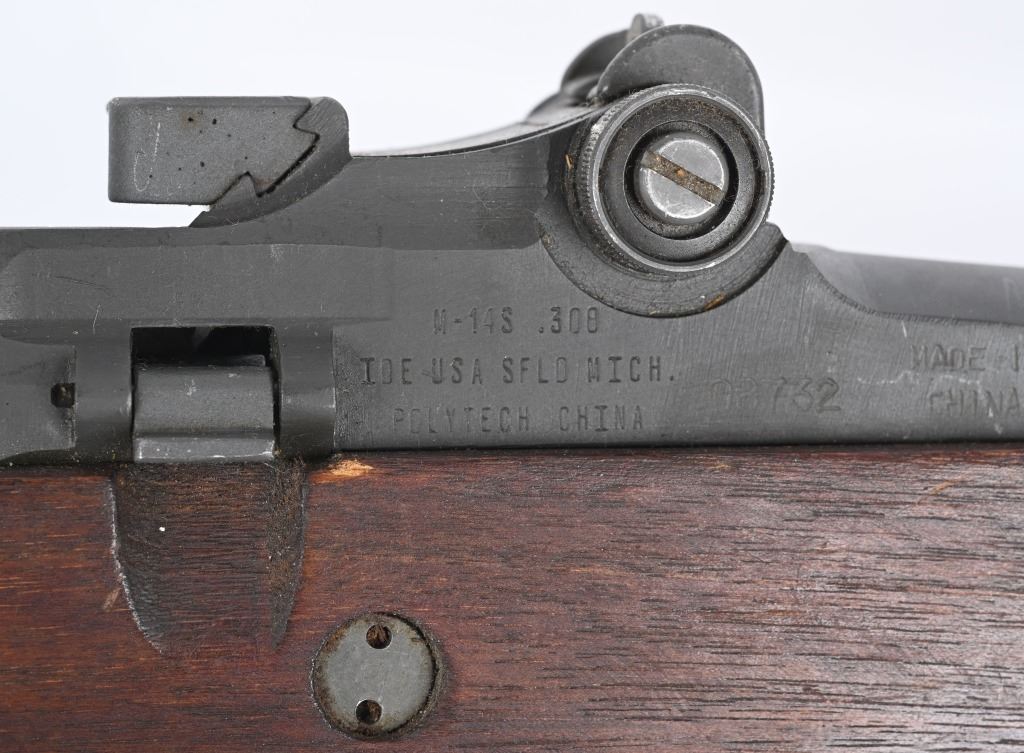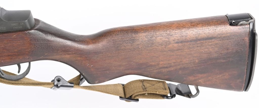 SERIAL NUMBER: 08732. BARREL: 22". CALIBER: .308 WIN. MANUFACTURED: 1990s. Chinese copy of the Springfield M14/M1A. Standard blade front sight and adjustable u-notch rear. No holed muzzle device and no bayonet lug to comply with the 1989 import ban. Factory parkerized finish and oiled wood stock. Brown plastic hand guard. Flip up metal butt plate with trapdoor underneath for a cleaning kit. Includes attached green canvas sling. No magazine included. CONDITION: Metal is excellent overall. Wood has minor scrapes, scratches and dents. Bore is shiny with crisp rifling. Mechanically fine. MODERN