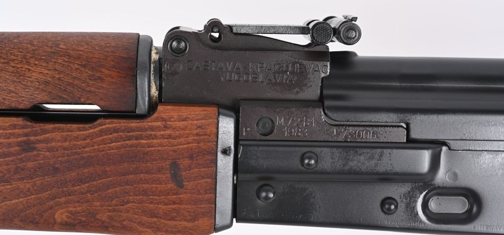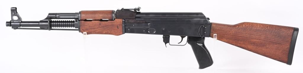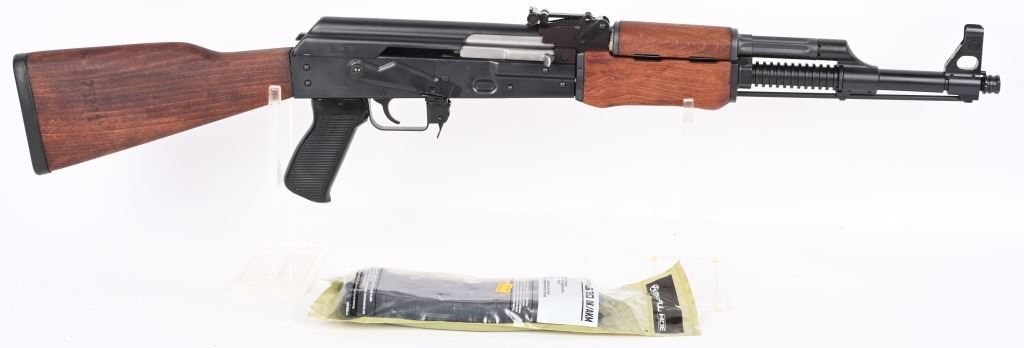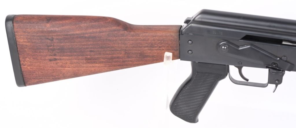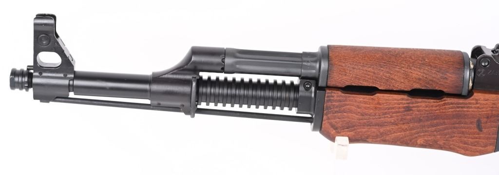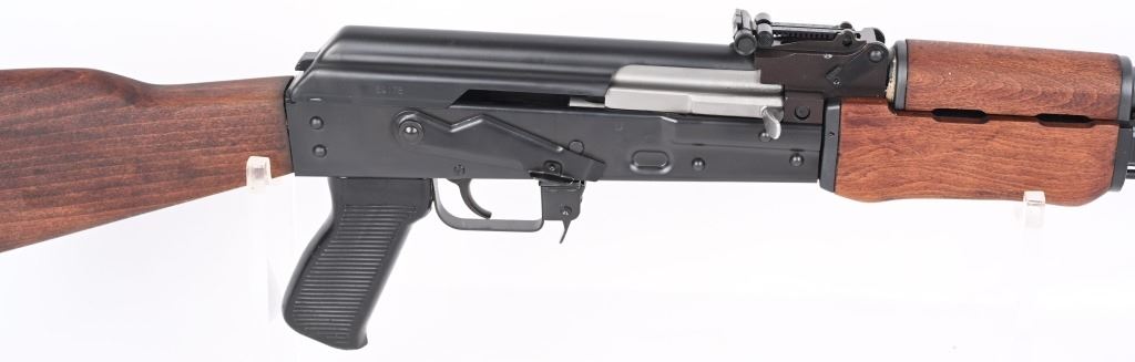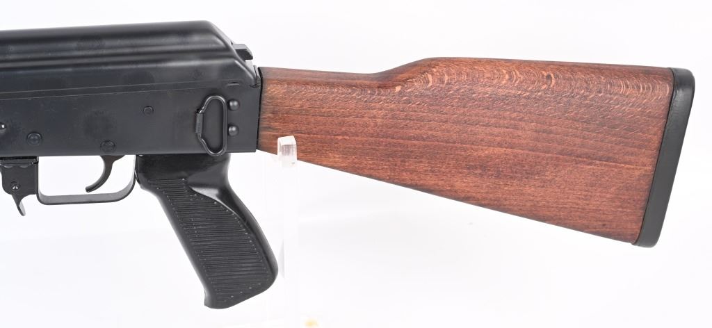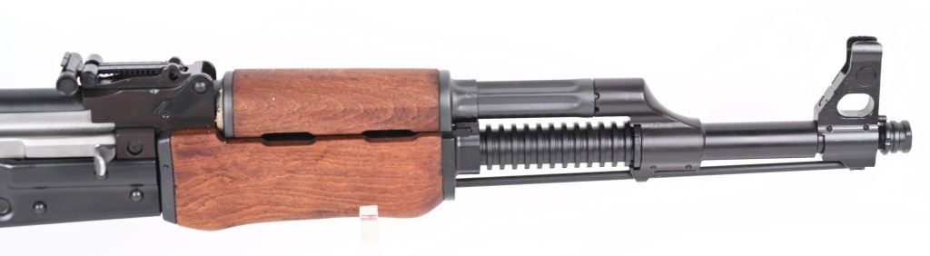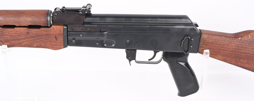SERIAL NUMBER: 720448. BARREL:16-1/4". CALIBER: 7.62X39. MANUFACTURED: 2010'S. Receiver made by James River Armory, being built on a non matching Yugo M72B1 parts kit. Trunnion is dated "1983". Heavy, RPK like barrel. Post front sight, with RPK type rear. Original front night sight. Arsenal re-blued finish and oiled wood stock/forearm. Includes a sealed 30 round Magpul PMAG. CONDITION: Excellent overall, with a few handling marks. Bore is shiny with crisp sharp rifling. Mechanically fine. Mag is excellent. MODERN