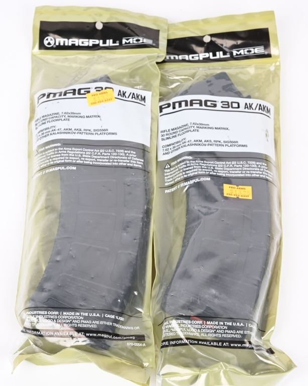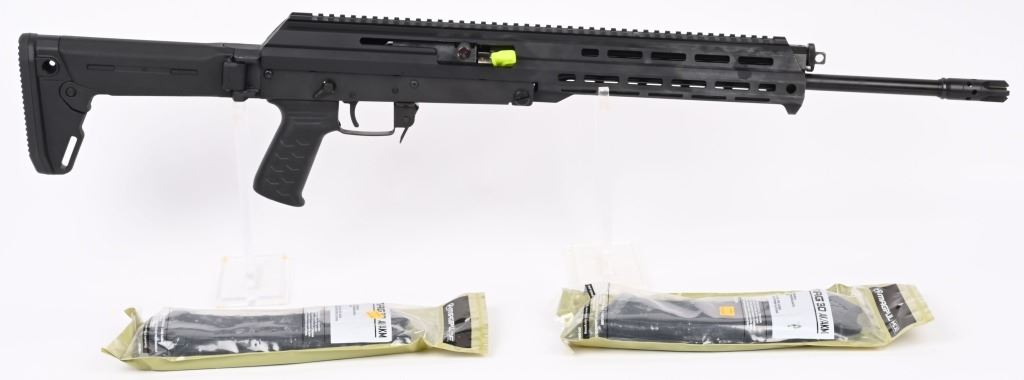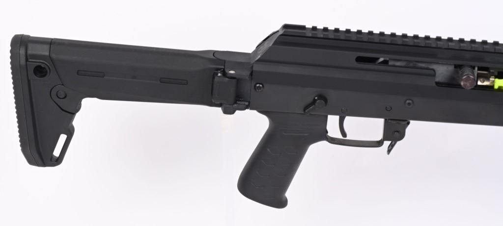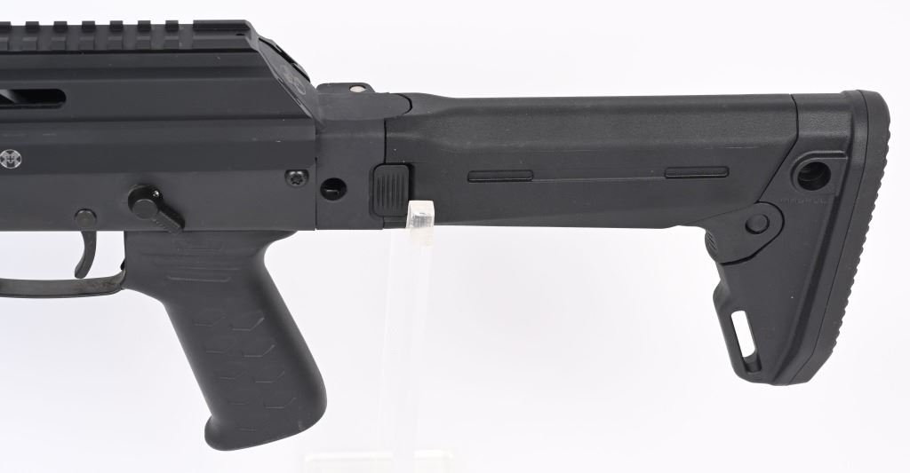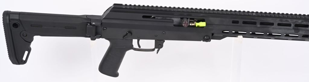 SERIAL NUMBER: W03925. BARREL: 16". CALIBER: 7.62X39. MANUFACTURED: 2010'S. Highly modernized version of the AK-47. Standard weight barrel with pronged flash hider. Black anodized finish. Factory M-Lok rail system. Magpul Zhukov folding polymer stock. Includes two 30 round polymer PMAGs (sealed), manual and box. CONDITION: Excellent overall, with no real signs of use or handling. Bore is shiny with crisp rifling. Mechanically fine. Box is excellent. MODERN