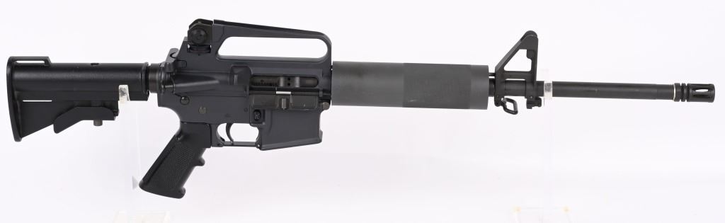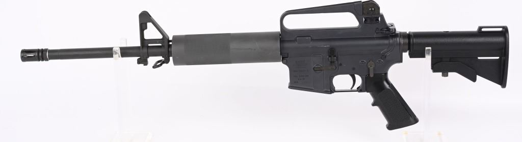 SERIAL NUMBER: 14065. BARREL: 16-1/2". CALIBER: 5.56MM. MANUFACTURED: 1990'S. Coal Valley Address, made before the 1994 AWB. HBAR profile barrel, with no markings. A2 flash hider. Post front sight and carry handle A2 rear. Free float M4 aluminum hand guard. Phosphate finish. Coated alumiunum CAR-15 style stock. NO MAGAZINE. CONDITION: Metal is excellent overall, with a few light handling marks. Furniture is excellent as well. Bore is shiny with crisp rifling. Mechanically fine. MODERN