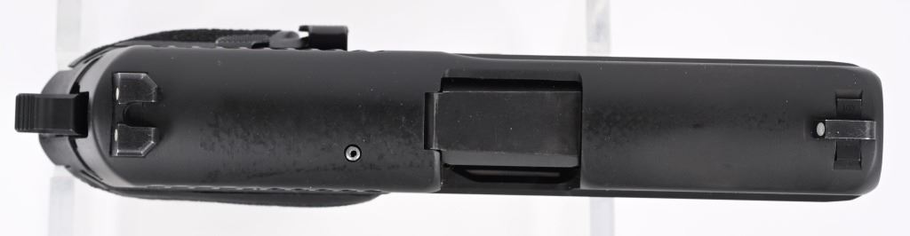 SERIAL NUMBER: 50A005689. BARREL: 3-1/2". CALIBER: .40 S&W. MANUFACTURED: 2013. Custom shop gun, made for a brief period of time. 3-dot sights. Black anodized frame and slide. Factory textured polymer grip. Includes four factory 10 round magazines, and a factory 12 round magazine as well. Serial matching case included as well. CONDITION: Metal is excellent overall, with a few handling marks. Grip is excellent. Bore is shiny with crisp rifling,. Fine mechanics. Magazines all have a few light scratches. Case is excellent. MODERN