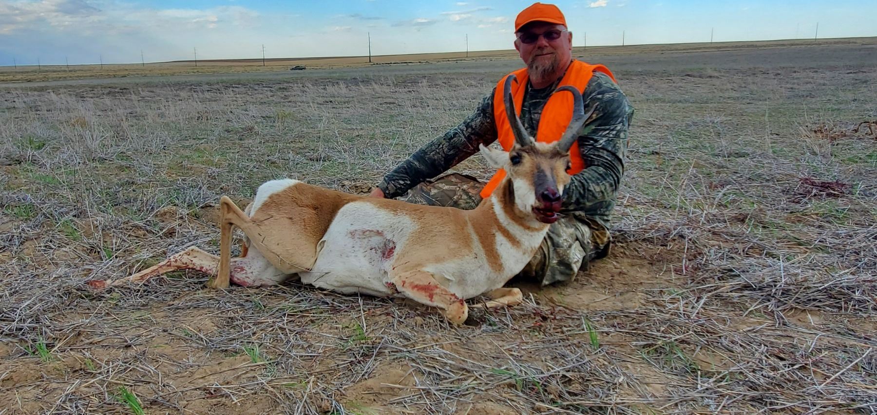 This is a 3-day Pronghorn hunt for 1 hunter in Colorado. The Eastern Plains of Colorado is home to thousands of Pronghorns. We have access to over 100,000+ acres in multiple game management units (GMU) in Eastern Colorado. The highest success hunt we offer is rifle Pronghorn. It’s almost all spot and stalk hunting and very popular with the long-range shooters as well as first time big game hunters. The Rifle Pronghorn season starts the first Saturday in October. License fees/landowner vouchers are not included in the hunt price. Rifle Pronghorn licenses need to be applied for through the Colorado draw process. Phantom Canyon can help you locate vouchers to purchase from local landowners if needed. Method of take is rifle. Arrival & Departure point is Denver, Colorado.