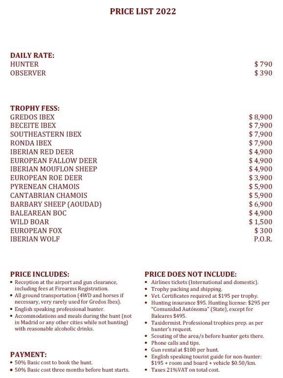 speaking professional hunter, scouting of the area before hunter gets there and trophy fee for one Iberian