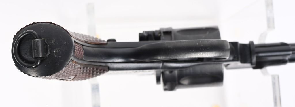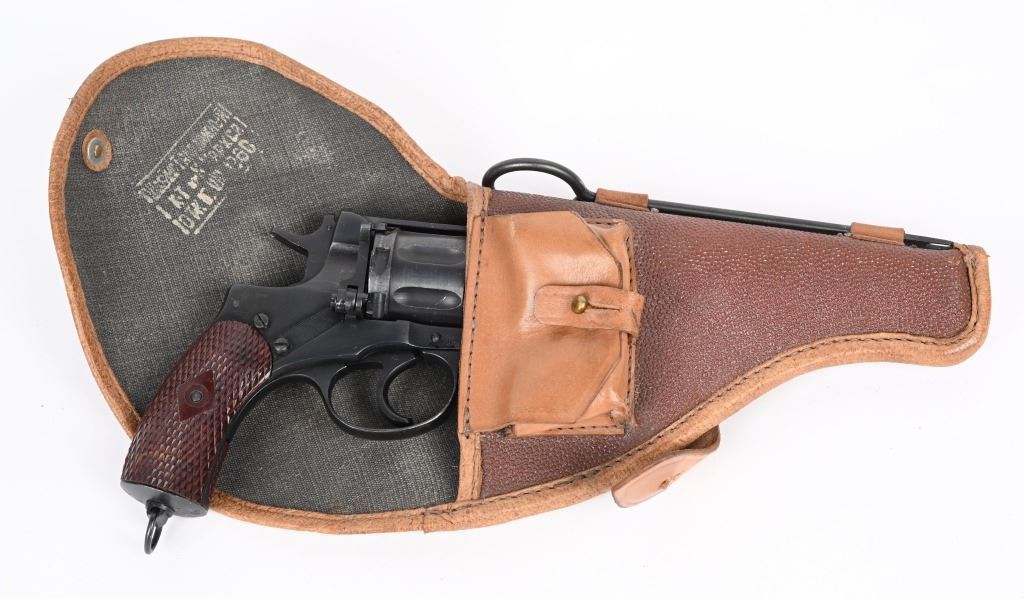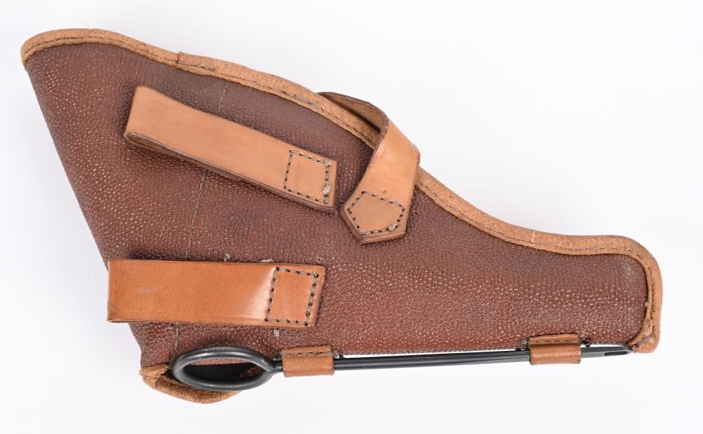 SERIAL NUMBER: 19299. BARREL: 4-1/2". CALIBER: 7.62X38MMR. MANUFACTURED: 1923. Made at the Tula Arsenal. Import marked on the left side of the frame. Matching serials on the slide and cylinder. Factory sights. Arsenal refurbished metal components. Checkered bakalite grips. Original lanyard ring and stud. Includes original leather holster (date and markings illegible) and cleaning spoon. CONDITION: Metal and grips are excellent overall as arsenal refurbished. Bore is shiny with crisp rifling. Sharp mechanics and timing. Holster is excellent. C&R
