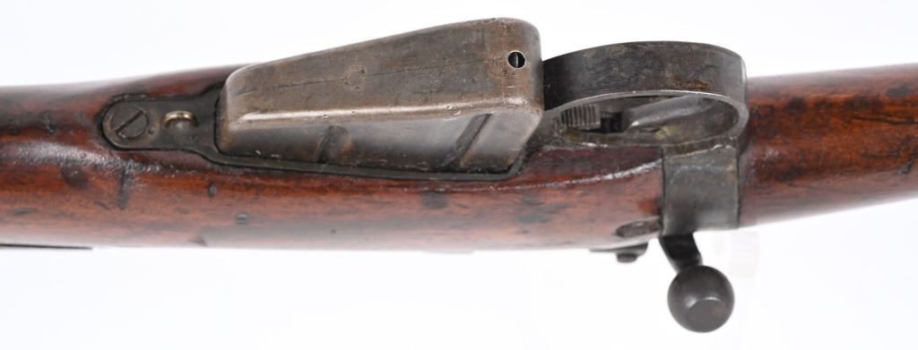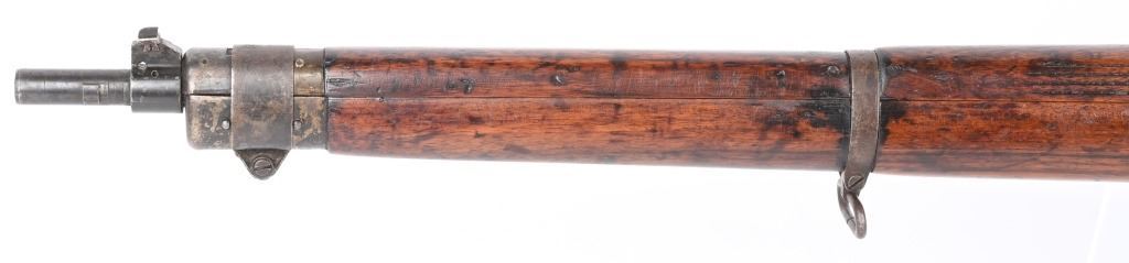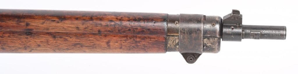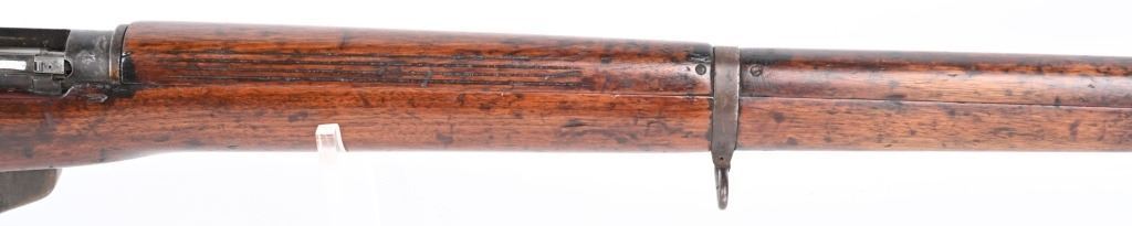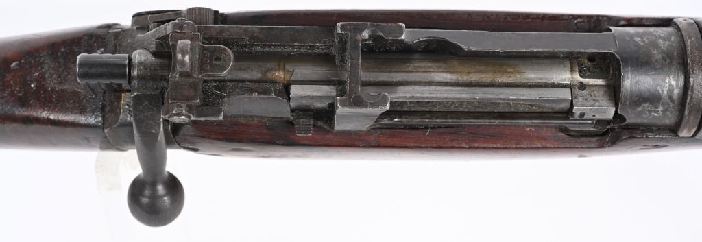 SERIAL NUMBER: F8995. BARREL: 25". CALIBER: .303 BRITISH. MANUFACTURED: 1942. "1942" faintly marked on the left side of the stock socket. No visible import marks. Mismatched serial numbers. Tonnage markings on the exterior of the muzzle. Standard blade front sight and two position flip rear. Front sight ears have been removed. Military blued finish. Stock has been sanded and re-oiled. Cast metal butt plate with trapdoor for a cleaning kit. CONDITION: Metal is fair, with heavy wear and brown patina. The action has dried grease present in areas. Wood has minor handling marks and scratches. Bore is clean overall with strong four groove rifling. Mechanically fine. C&R
