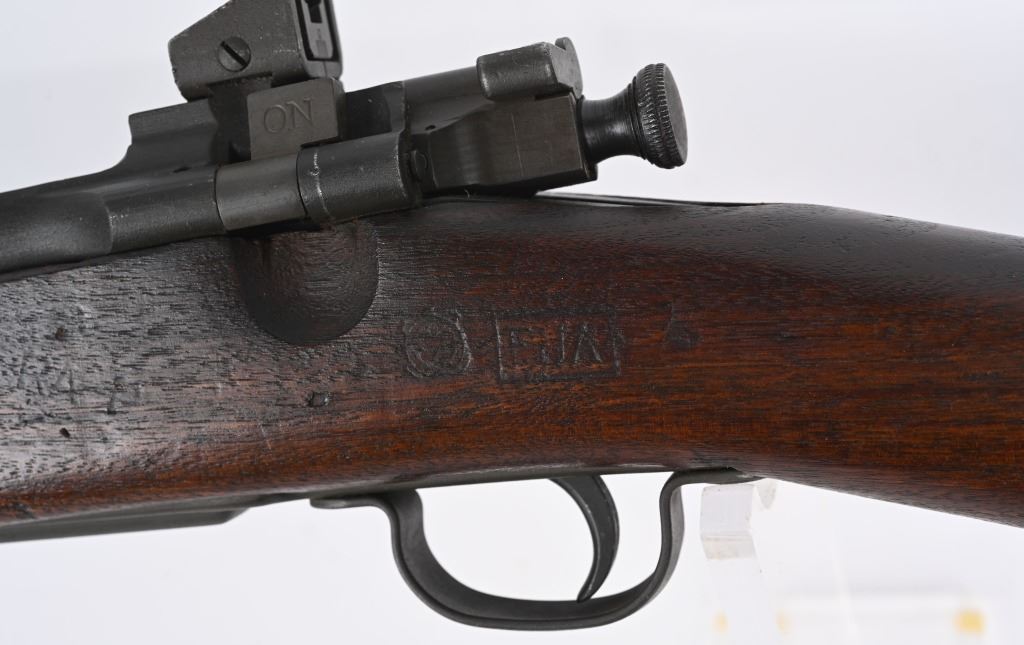 SERIAL NUMBER 4783021 BARREL 24" CALIBER 30-06 SPRINGFIELD MANUFACTURED 1943. Parkerized finish with straight walnut stock with handguard. FJA Cartouche on left side. 9-43 dated barrel. CONDITION. Very good as arsenal refinished. Excellent bright bore . Action operates properly. Stock are very good with light marks and impressions. C&R