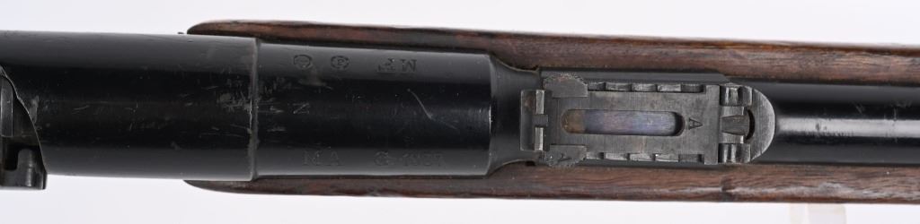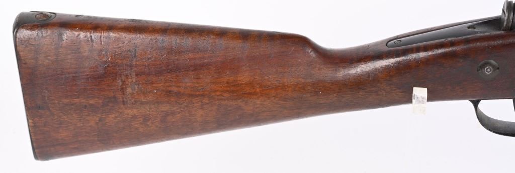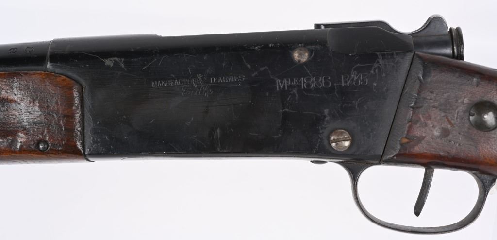 SERIAL NUMBER: NSN. BARREL: 18". CALIBER: 8MM LEBEL. MANUFACTURED: 1937. Made during the interwar period, with surplus Lebel parts. These guns were used heavily during the German invasion of France. Barrel is "MAC" production and is dated "1937". Tulle manufactured frame, with Ball "N" marks on the chamber. No import marks found. Mismatched serial numbers. Standard R.35 carbine sights. Black enamel finish. Oiled wood stock and forearm. Smooth metal butt plate. CONDITION: Metal is very good overall, with light wear and scratches. Wood has minor dents, scratches and scrapes. Bore is lightly frosted, with strong rifling retained. Fine mechanics. C&R