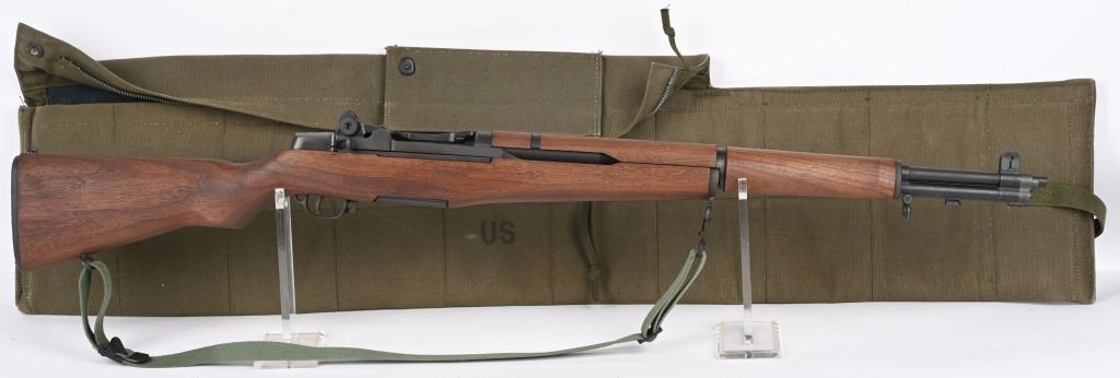 SERIAL NUMBER: 7104714. BARREL: 24". CALIBER: .30-06. MANUFACTURED: 1990'S. Made commercially by Springfield Armory INC (not the government owned entity), with a mix of new made and surplus parts. Receiver, barrel, stock and some small parts are commercial production. Bolt, operating rod and trigger guard are surplus GI. Standard blade front sight and adjustable rear. All parts were re-parkerized. Stock has a light oil finish. Includes attached new made green canvas sling, and 1960's era paratrooper jump case. CONDITION: Metal and wood are excellent overall, with little signs of handling or use. Bore is shiny with crisp rifling. Sling and case are excellent. MODERN