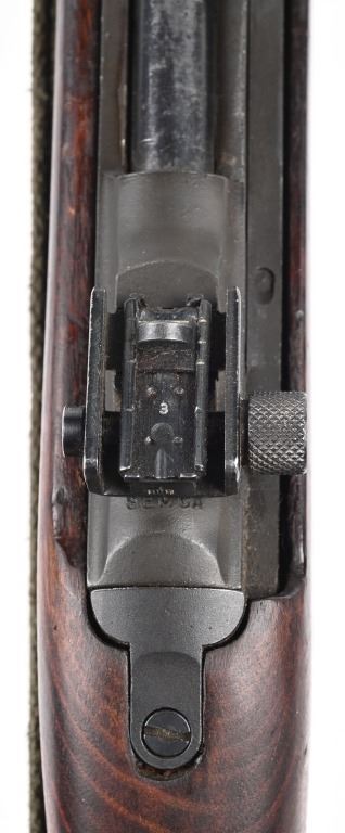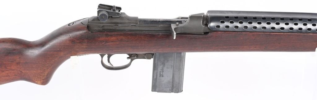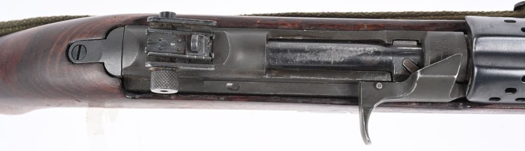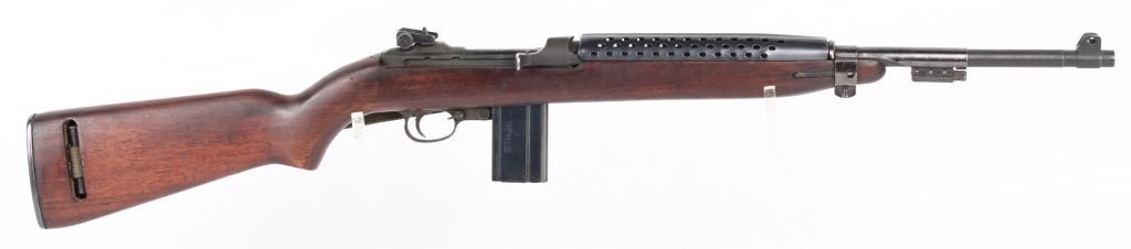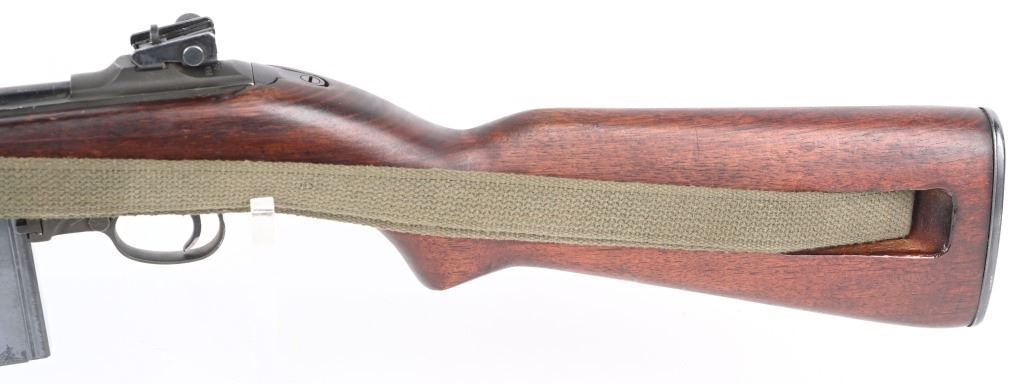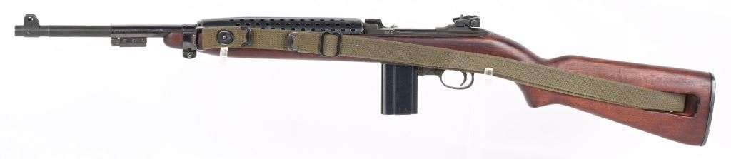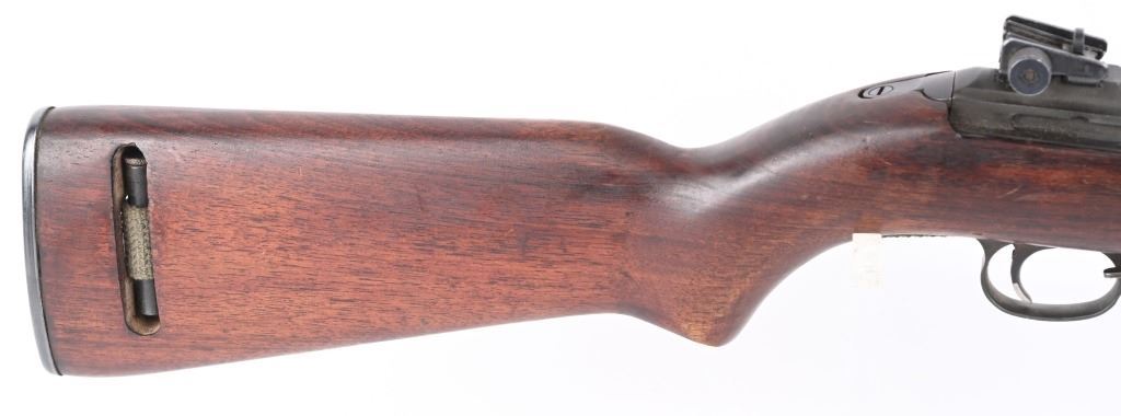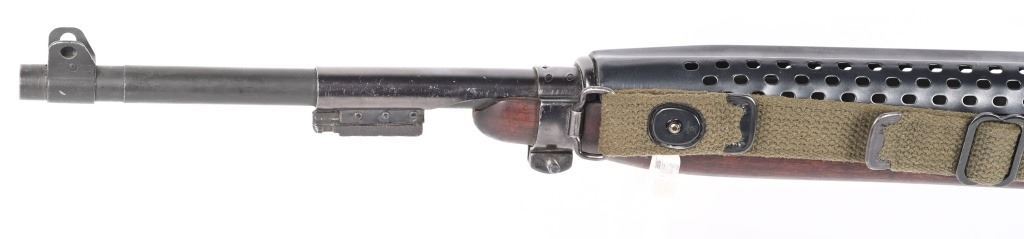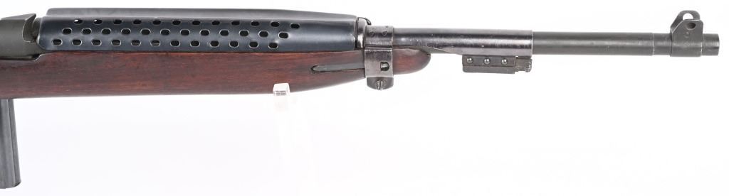 SERIAL NUMBER: 51655. BARREL: 18". CALIBER: .30 CARBINE. MANUFACTURED: 1980's. Receiver made by Federal Ordnance. Gun was assembled by them from a mix of original USGI and new made parts. Standard blade front sight and stamped adjustable rear. Original parkerized finish. Oiled wood stock and metal hand guard. Includes an original Underwood 15 round blued steel magazine. Modern made green canvas sling and metal oiler. CONDITION: Metal is excellent overall, as is the stock, with both having a few light handling marks. There is a repair behind the trigger guard. Bore is shiny with crisp rifling. Magazine has light finish wear. Mechanically fine. Sling is excellent. MODERN