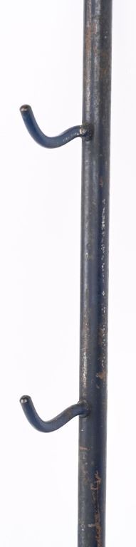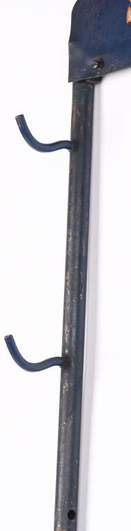 Used by store dealers to display the new line of Remington rifles in the days of small stores before the war. The rack held five rifles and there is a factory metal painted header sign. It can be hung on a wall or there are holes in back legs tubes for simply pie tray stand. The header shows a few age spots and handling but is one of the best we have ever seen whose total can be added on one hand.