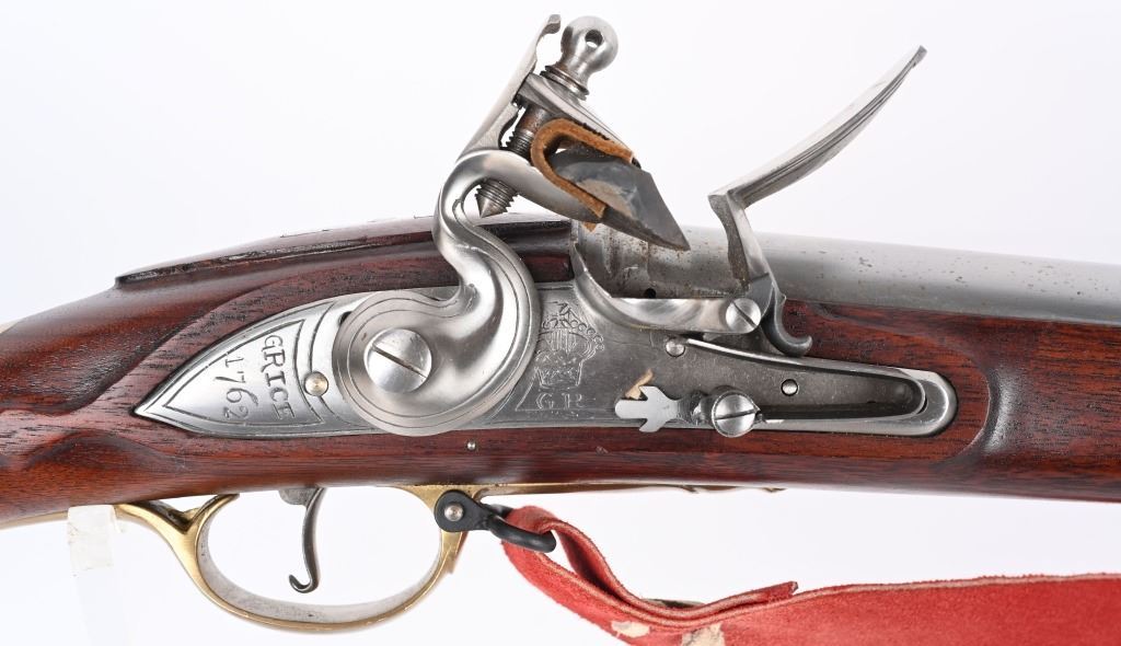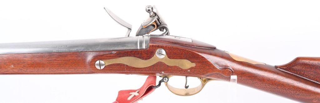 SERIAL 11887. BARREL 42". CALIBER 75. Quality reproduction by Pedersoli. This Tower musket is stamped "1762 GRICE" with GP and crown on lock. Metal finished in the white with brass furniture, a full length walnut stock, and metal cleaning rod. Condition. Near new condition with light handling. NO FFL