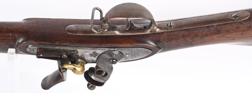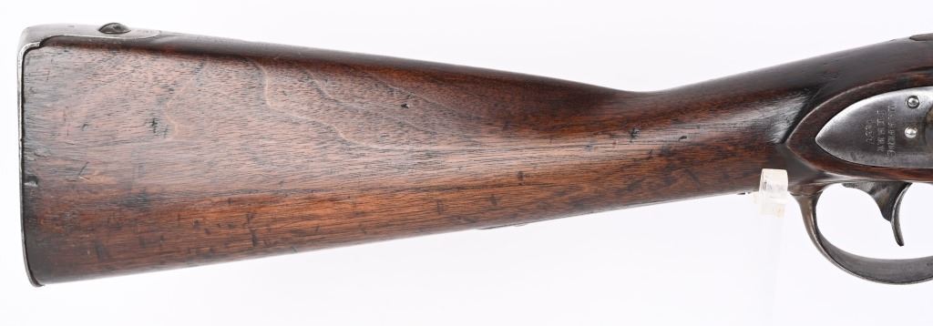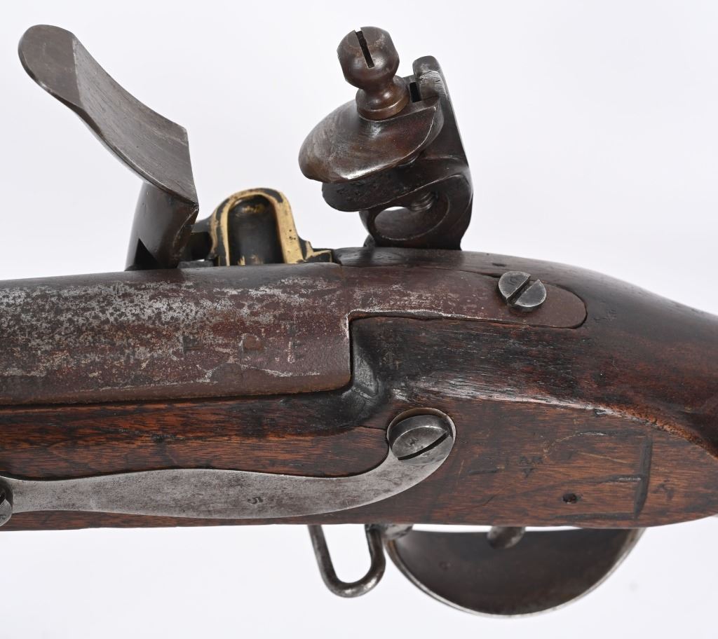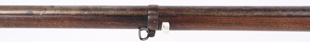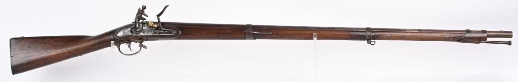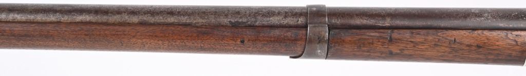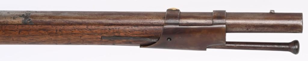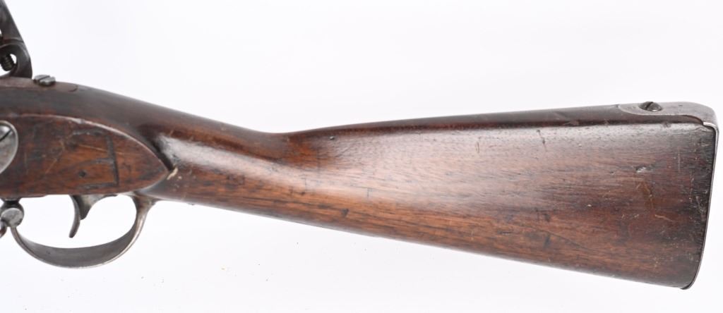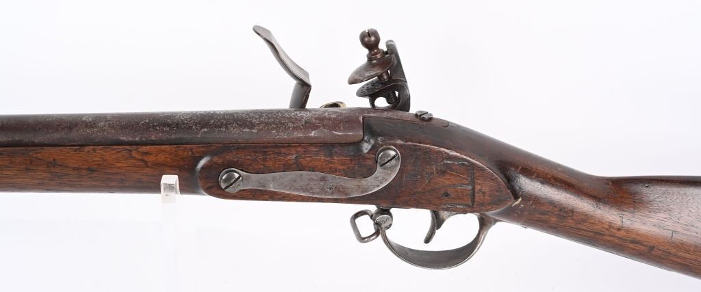 BARREL 42". CALIBER 69. This example was made at Harpers Ferry in 1837, and is so stamped on lock with US & eagle. Proof marks stamped on left side of barrel at breech. All iron mountings to include 3-bands, sling swivels, no barrel rear sight, iron ramrod, and full length walnut stock. Condition. Small repaired crack on left side at breech, , otherwise excellent stock with cartouche stamp on left side. Metal is smooth patina. Fairly clean bore. Nice example that was well cared for. ANTIQUE
