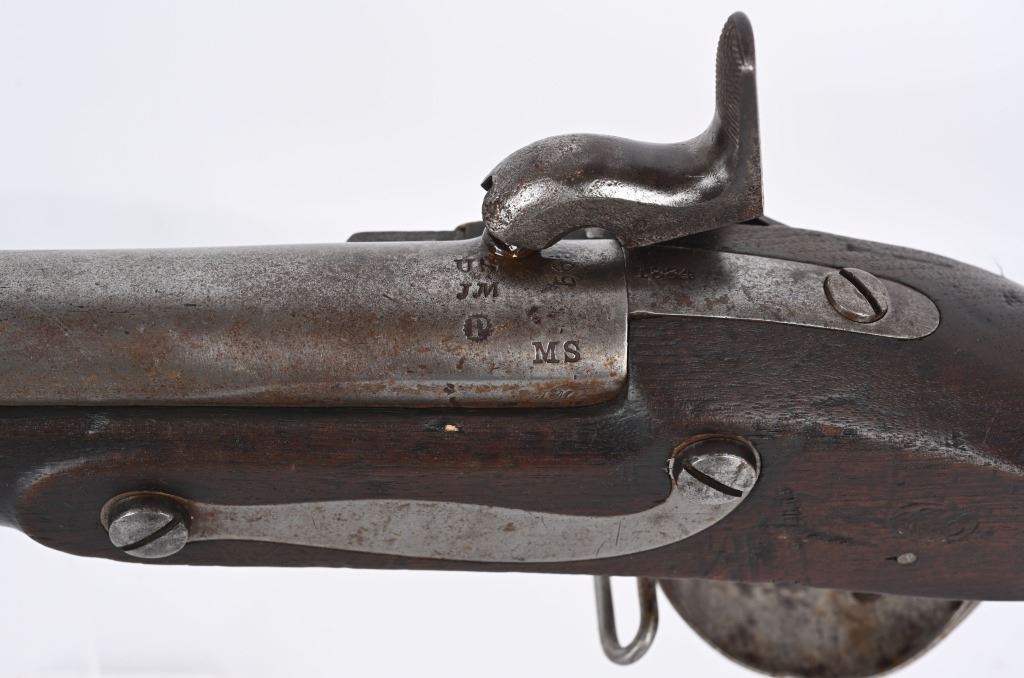 BARREL 42". CALIBER 69. Lock is stamped "E.WHITNEY NEW HAVEN 1834" with eagle. Tang is dated "1834". Barrel breech is stamped "US JM MS, PROOF P AND 568". Left side of stock has cartouche stamp. Typical period conversion to percussion. Features 3-bands, full length walnut stock, sling swivels, metal finished in the white. Condition. Stock is excellent condition with usual minor dings. Metal clean and smooth with age toning. Bore is very good. ANTIQUE